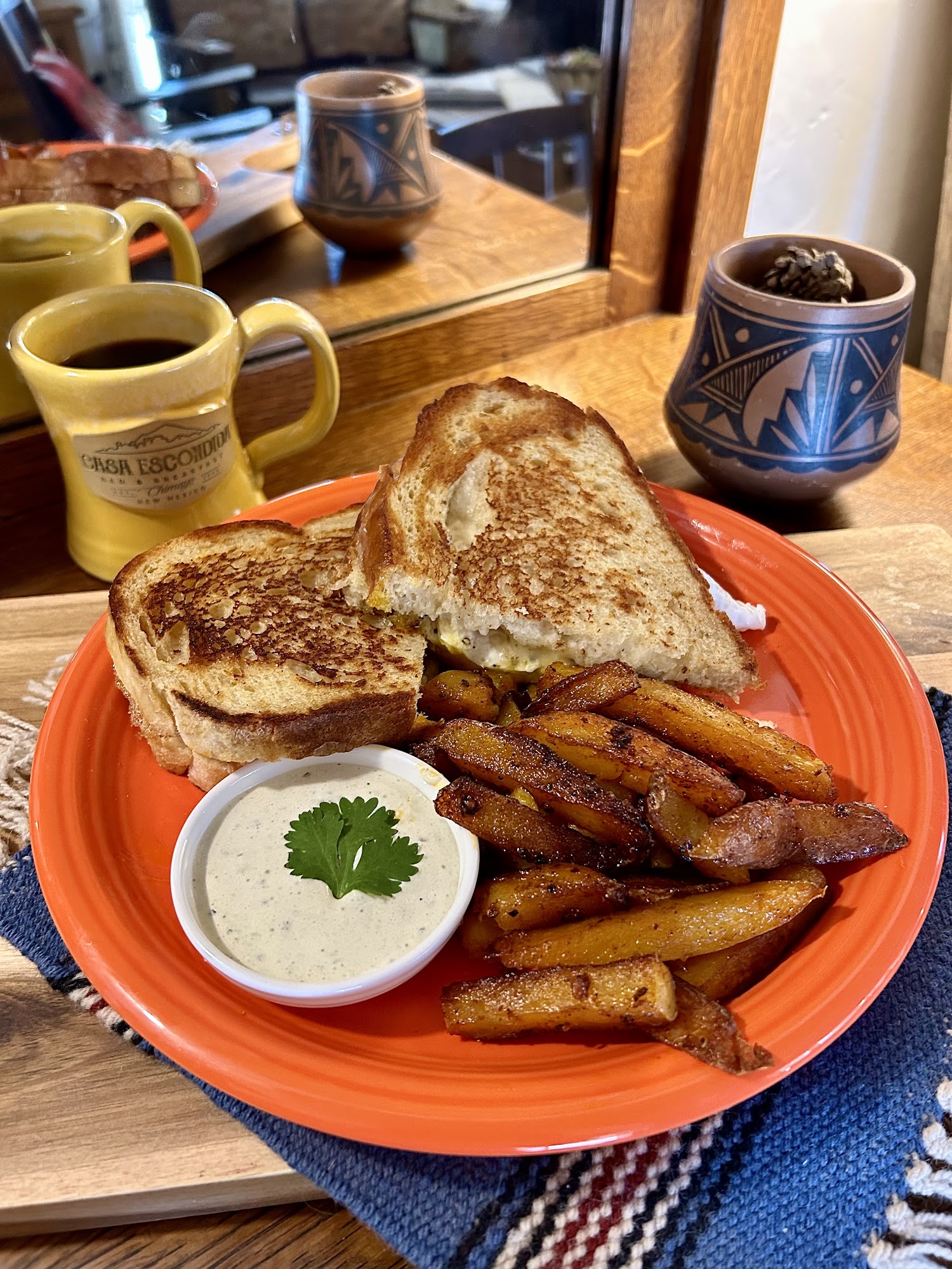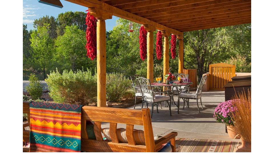 Casa Escondida Bed & Breakfast in Chimayo, New Mexico, offers a warm and authentic experience rooted in local culture and natural beauty. The traditional New Mexican architecture, with adobe walls and wooden porches adorned with drying red chilis, creates a charming and inviting atmosphere. Inside, guests find cozy, clean rooms decorated with vintage charm and vibrant artwork, providing a perfect space to relax and unwind. The outdoor spaces and common areas are ideal for enjoying the peaceful surroundings, with mountain views and the sounds of birds adding to the tranquil setting. Every morning, guests are treated to delicious, tasty breakfasts prepared with fresh, locally-sourced ingredients, featuring traditional New Mexican dishes like green chile stew and breakfast burritos. The helpful and friendly staff go above and beyond to make visitors feel at home, whether they’re stopping for a quick overnight stay, planning a special event like a wedding or elopement, or enjoying a family reunion. The hosts are welcoming, accommodating, and attentive, ensuring a memorable and relaxing experience. Located close to Chimayo Sanctuary and area restaurants, Casa Escondida is a perfect retreat for those seeking a genuine, memorable stay in New Mexico. Its combination of beautiful scenery, authentic cuisine, and friendly service makes it a highly recommended destination for anyone looking to connect with the local culture and nature.