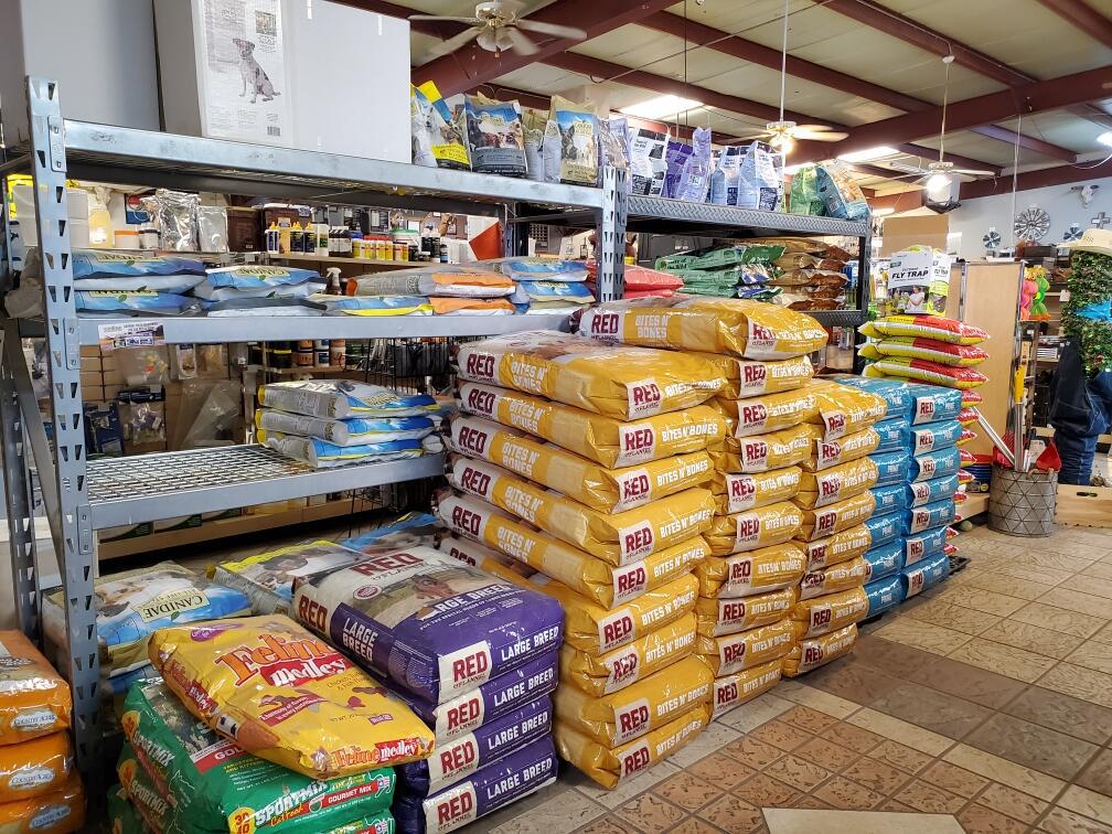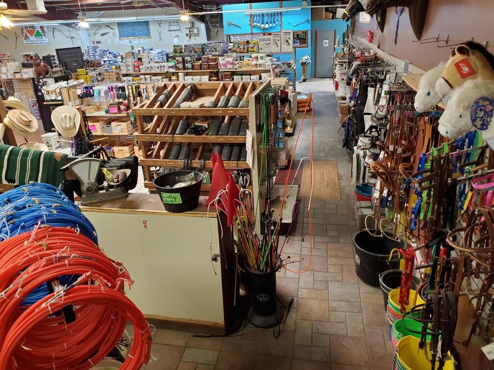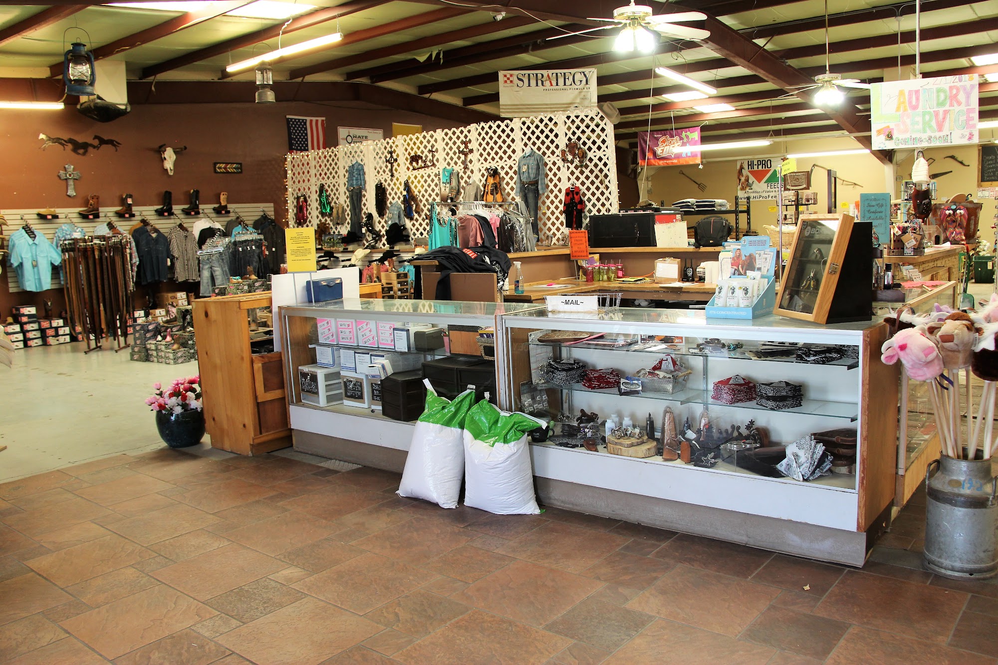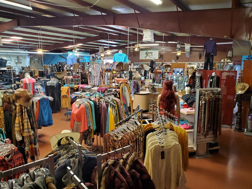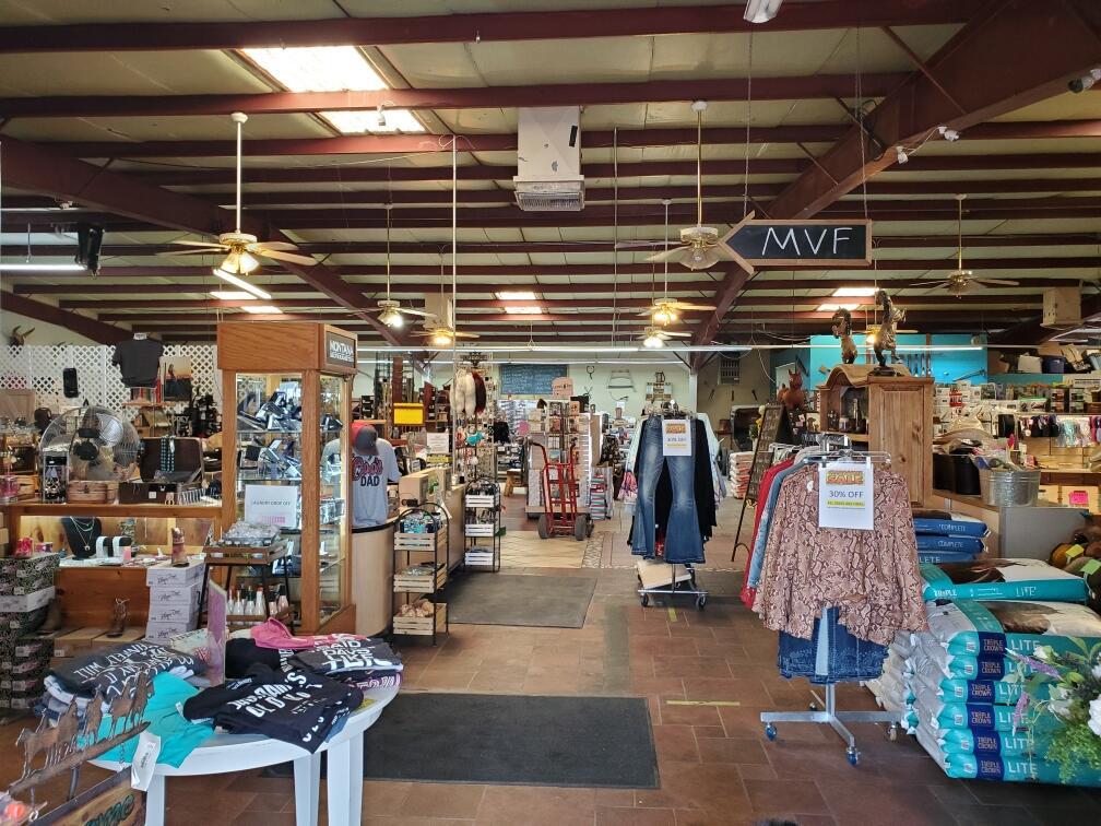 Nice selection of men’s and women’s clothing and feed supplies