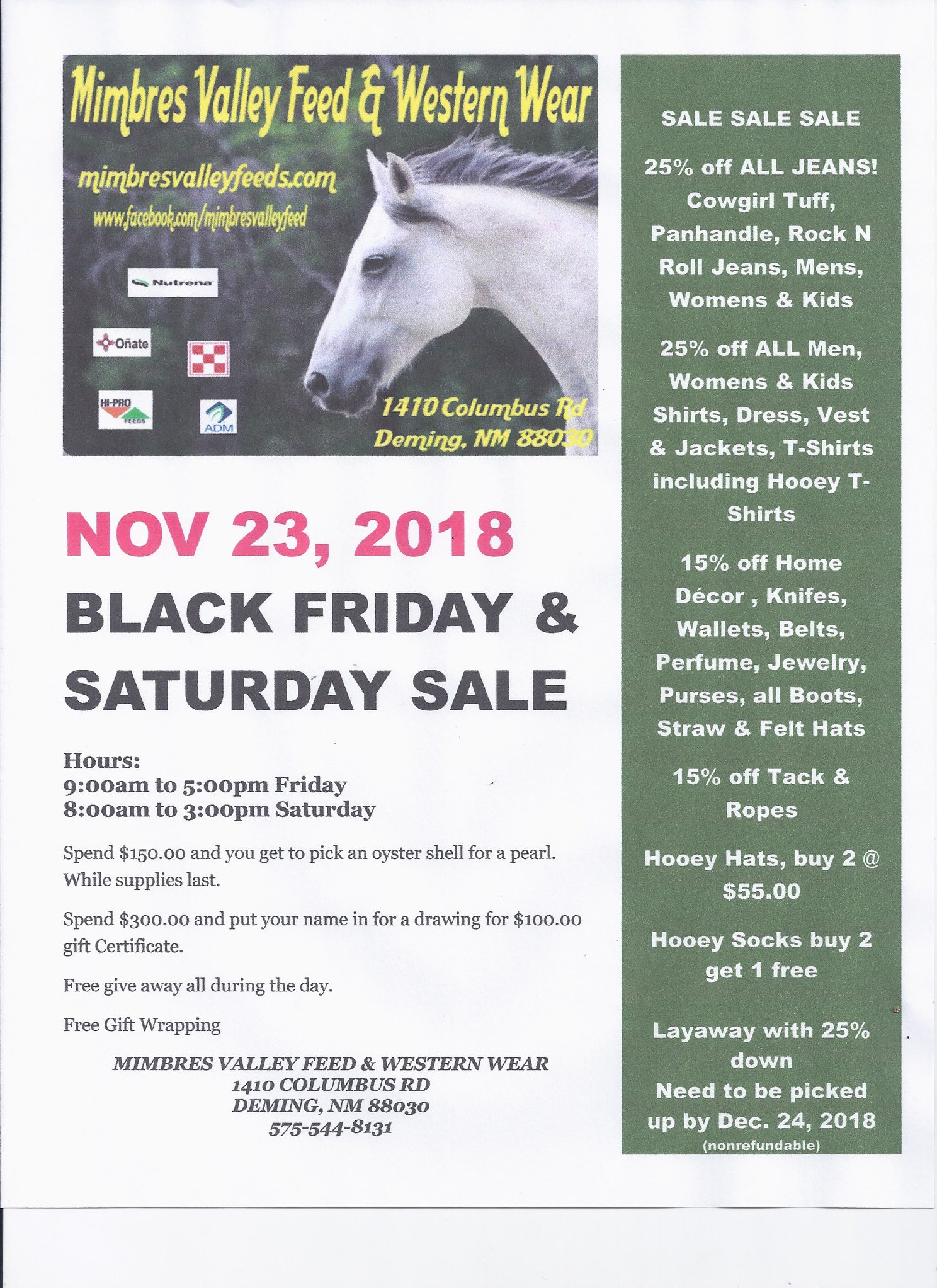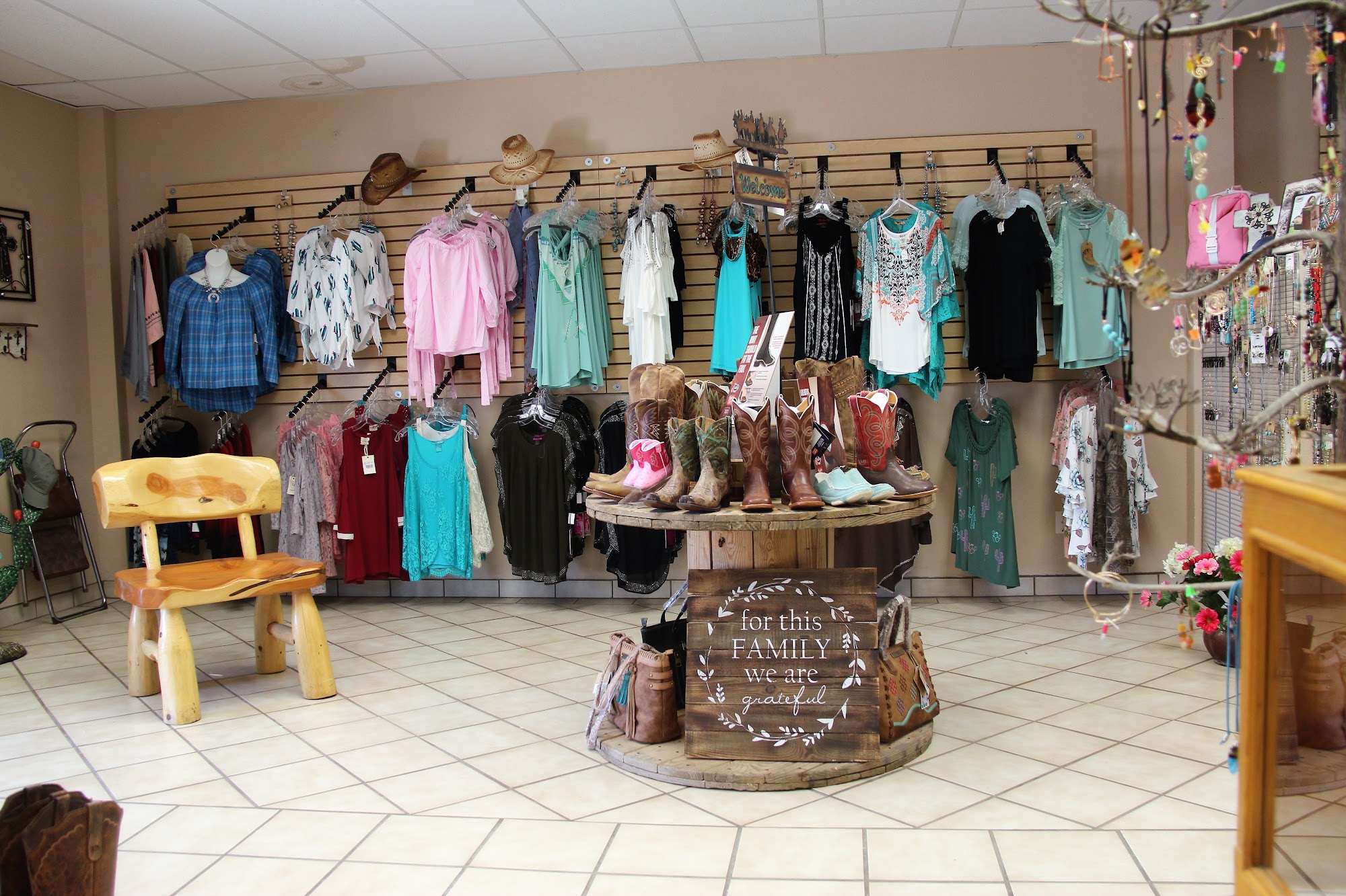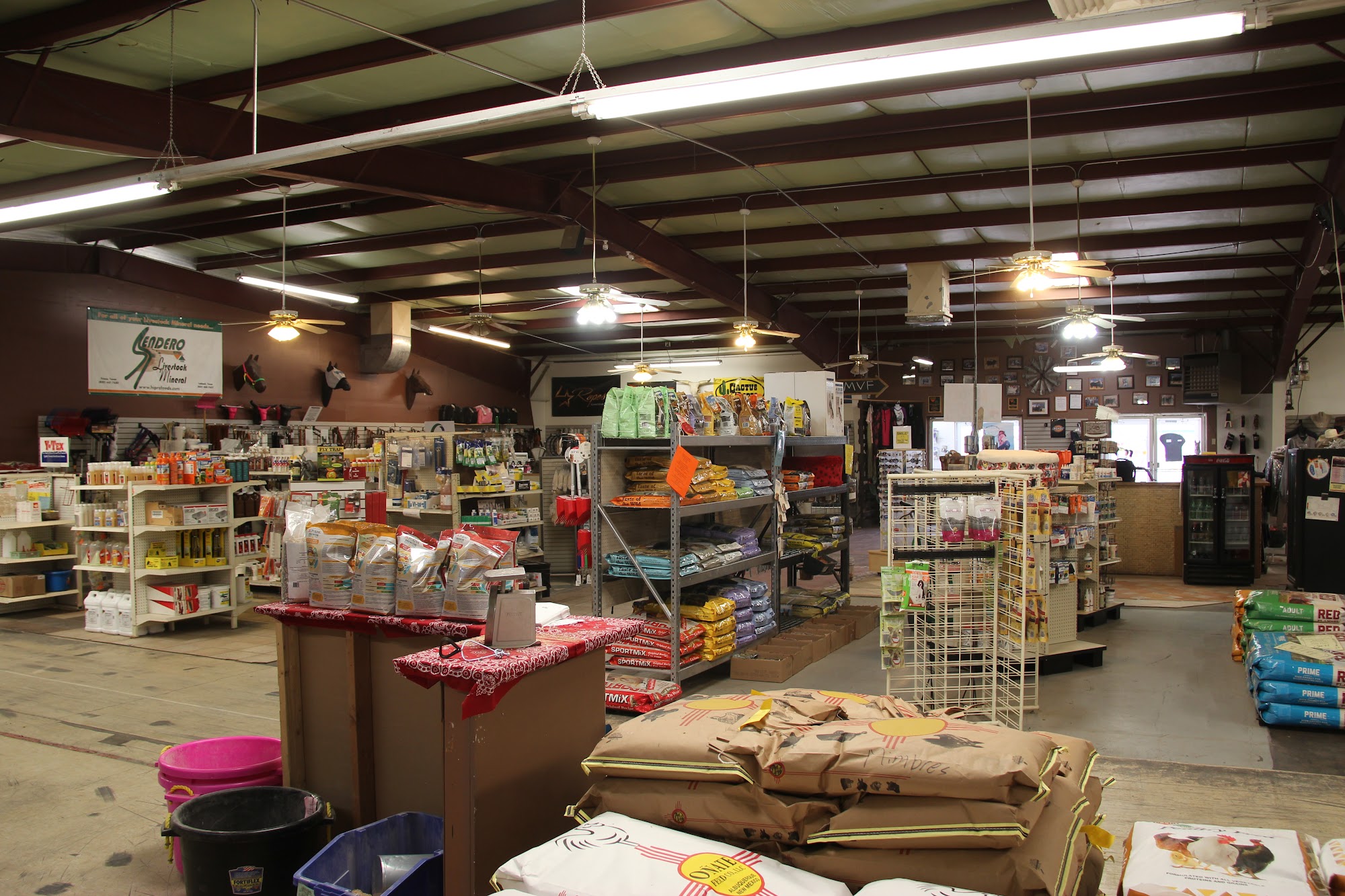 Nice selection of men’s and women’s clothing and feed supplies