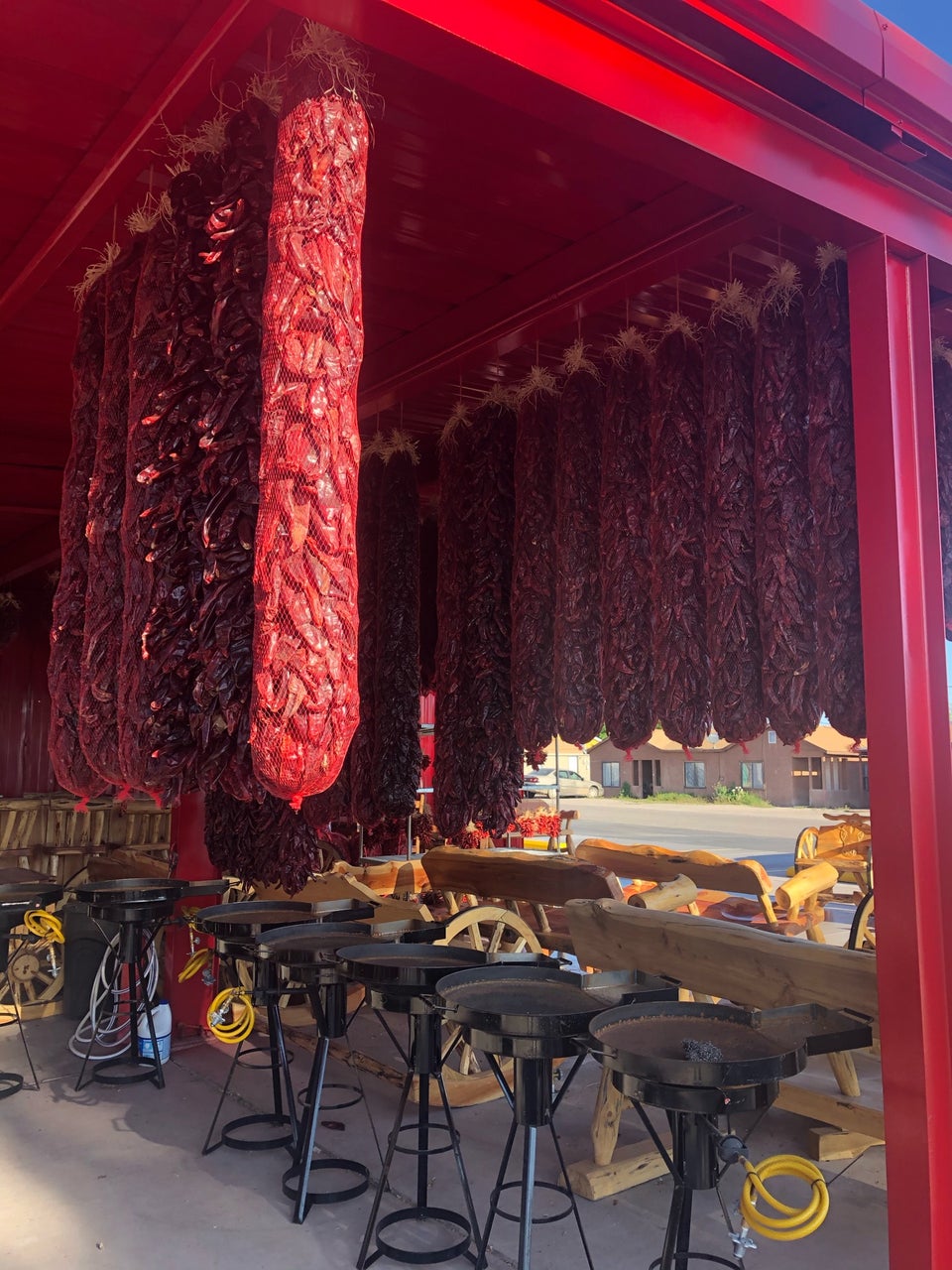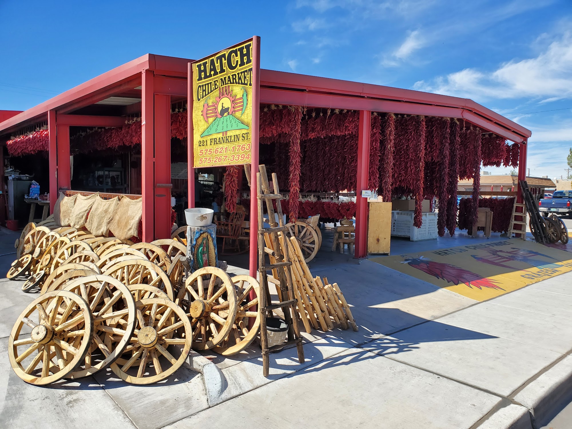 Hatch Chile Market is a charming local store in Hatch, New Mexico, known for its extensive selection of herbs and chili powders, ranging from mild to extremely hot. Customers appreciate the vast variety of dried chilies, local salsas, jams, and other condiments. The market also features pottery, kitchen items, and clothing. With friendly and helpful staff, visitors receive excellent service and find good prices on their purchases. Many stop by to satisfy their chili cravings, especially those traveling through New Mexico. The market is celebrated as the go-to place for red and green New Mexico chilies, with loyal customers who return for more. The strong flavors and delightful aromas make it a must-visit destination for chili lovers. Additionally, visitors are encouraged to check out the nearby B and E burritos for a tasty meal.