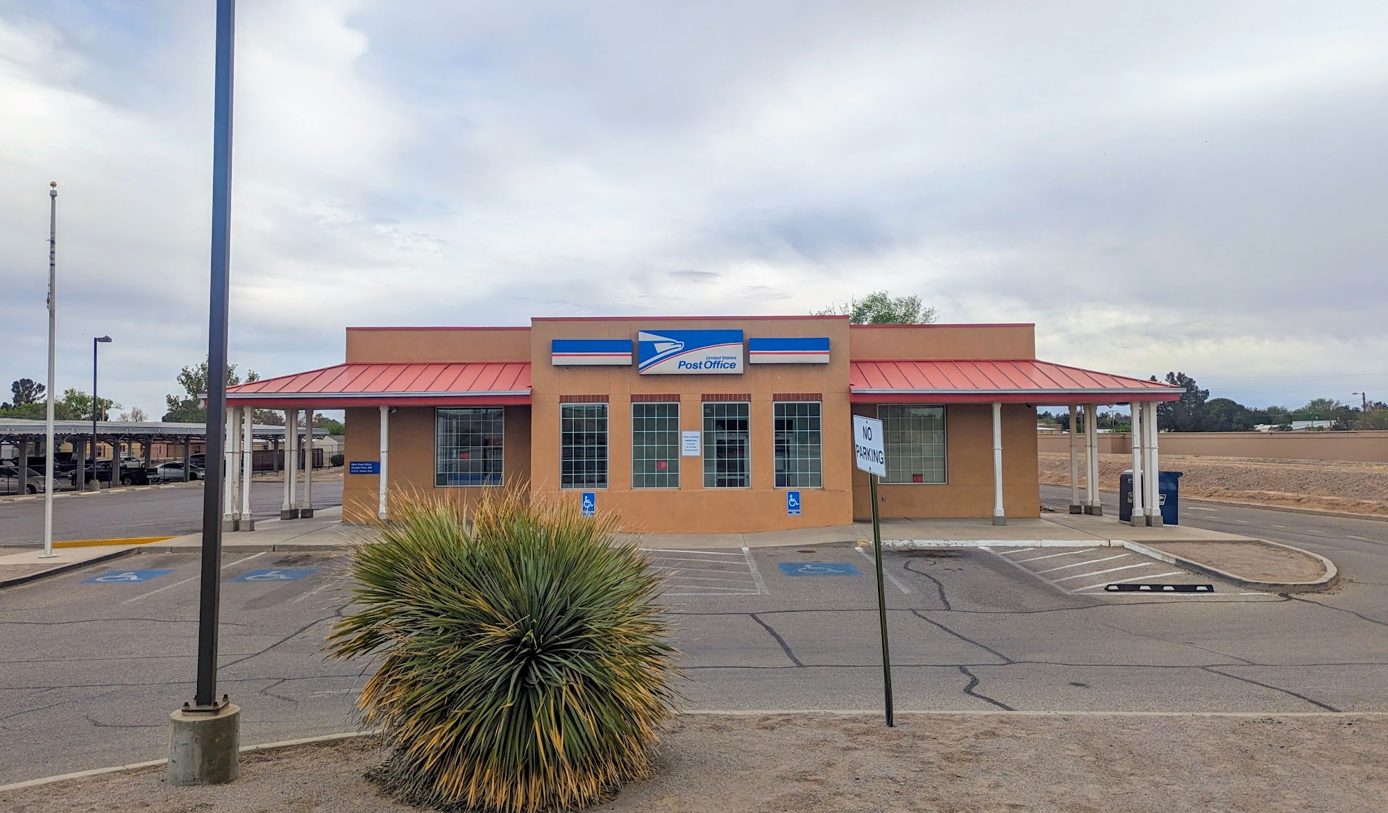 Small efficient post office. Never any long lines. Young girl there efficient and very helpful. Easy parking but on busy road. Have to be patient exiting.