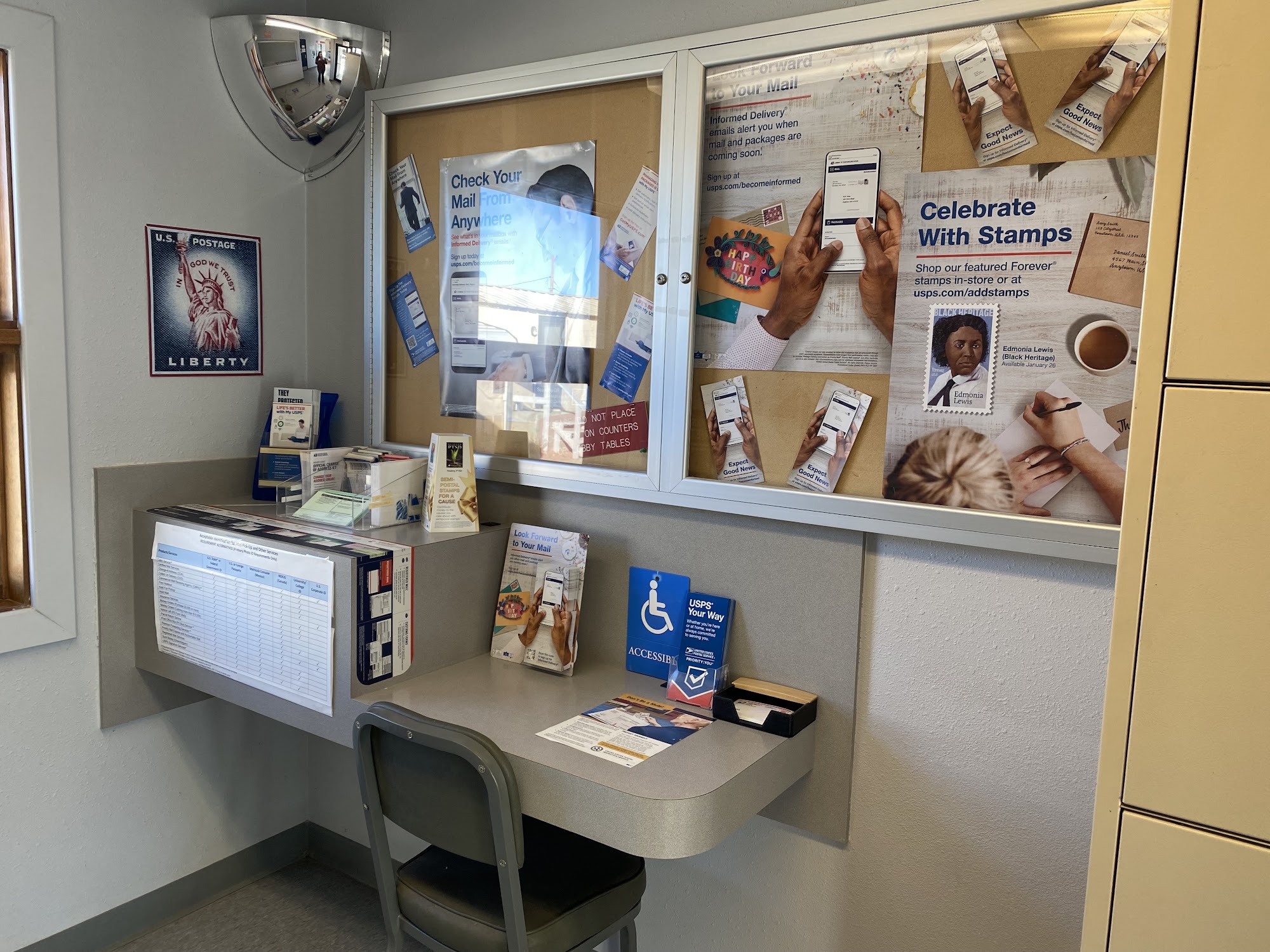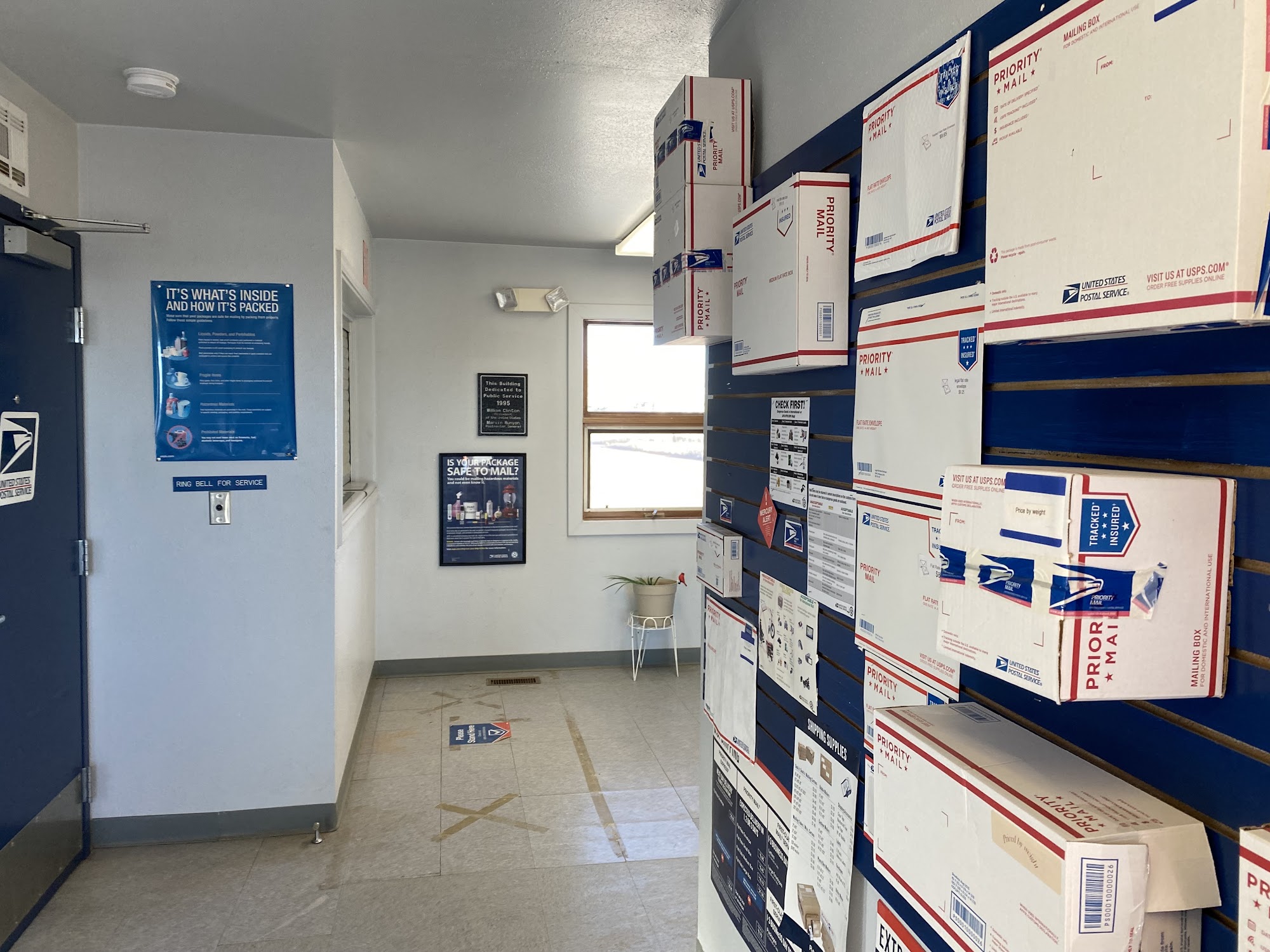 Small Post Office with everything you need. They have mailboxes to package boxes to receive any item at any time of day. boxes and envelopes Of every size are advisable to get you squared away. The lobby is open 24 hours, and the office is open 10 am - 2 pm weekdays.