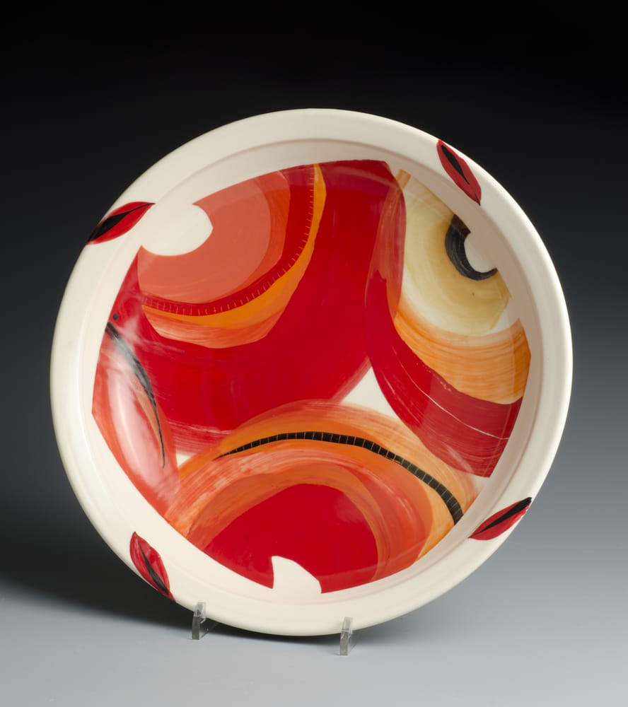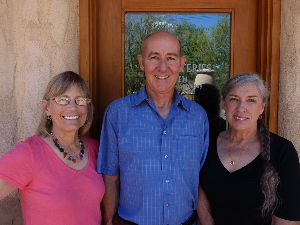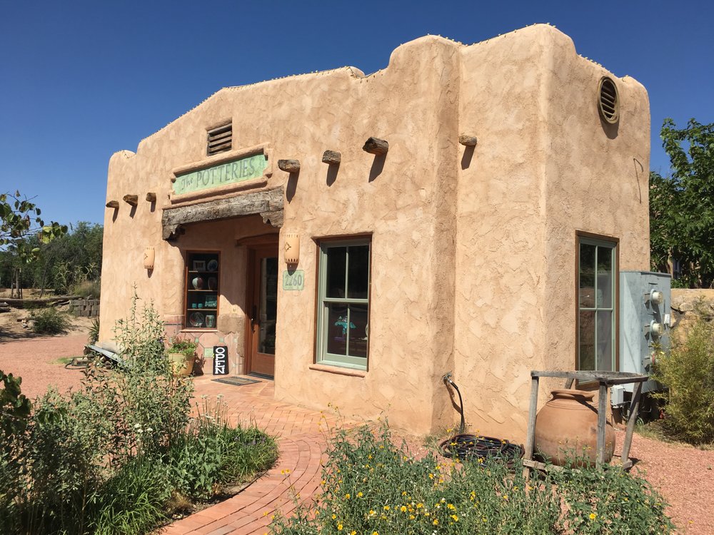 The Potteries has been producing contemporary art since 1986. The three potters, Janice Cook, Bill Cook, and Jeanne Rundell each have a separate and distinctive style. Janice creates porcelain dinnerware in bright colors as well as larger sculptural pieces. Bill is known for his meticulously crafted southwestern clay lighting fixtures. He digs white, buff, and red earthenware clays and throws them on the potter’s wheel. Jeanne Rundell was once a potter and has become a painter of farm equipment and other whimsical motifs.