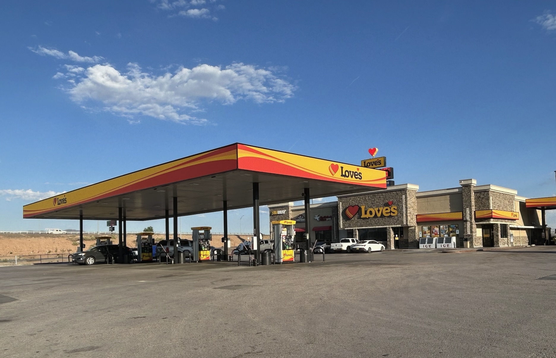 Love's Travel Stop at Exit 79 on I-40 is a busy and convenient location offering friendly service, clean facilities, and a modern store. It provides diesel fuel, gas, food, and supplies to keep drivers moving. The parking lot is large with easy access, though it can fill up quickly later in the day. Inside, the store is simple but clean, with a coffee station and snacks available. Restrooms are generally decent, though some reviews note issues with cleanliness and odors, but recent reports suggest improvements in maintenance and hygiene. The staff are friendly, and the location features Tesla superchargers across the street, making it suitable for electric vehicle owners. Overall, it’s a solid place for a quick break, fuel, and a shower if needed, though some find the amenities average and the place busy. The quiet town setting adds to its convenience, making it a practical stop for travelers on I-40. Despite some past concerns about cleanliness, recent feedback indicates that standards have improved, making it a reliable choice for a quick rest and refuel.