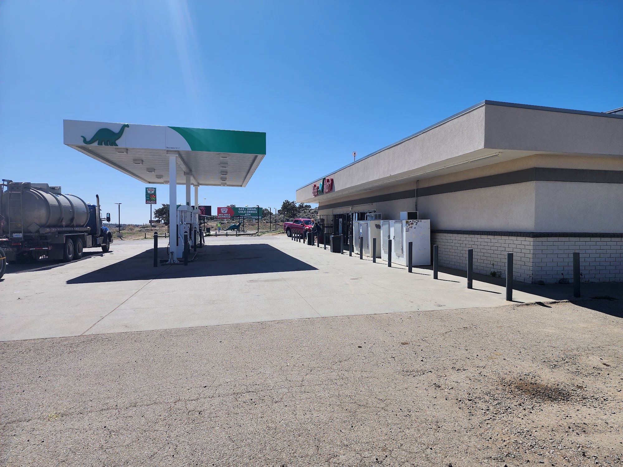 Sinclair is a conveniently located gas station and convenience store on US-550, ideal for travelers heading to destinations like Chaco Culture National Historical Park and Bisti Badlands. The station is clean, organized, and well-maintained, featuring modern fuel pumps and a spacious parking area that can accommodate larger vehicles and groups. Visitors appreciate the clean restrooms and friendly staff, making it a pleasant stop during long road trips. The convenience store offers a variety of essential items, including coffee, snacks, cold drinks, and travel supplies, ensuring that travelers can refuel both their vehicles and themselves. Families especially enjoy the dinosaur outside, which provides a fun photo opportunity for kids. Overall, Sinclair is a reliable and traveler-friendly pit stop, recommended for anyone passing through northern New Mexico.