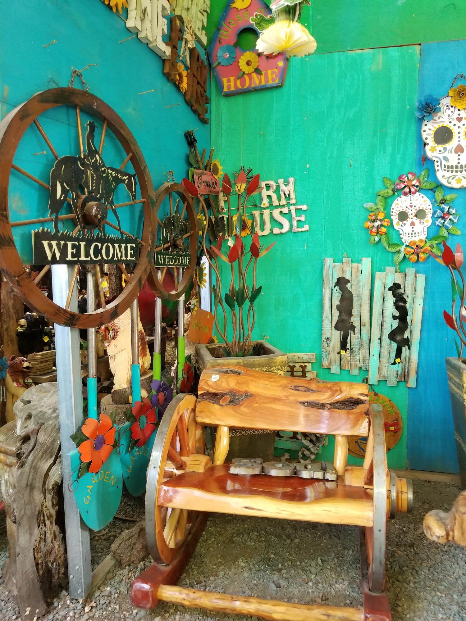 Very cool place. Where you can find a unique present. Beautiful metal flowers ? and metal Cactuses ? colours are just out of this world ? it’s worth to check out the wood works ? still not impressed, check the awesomely painted skulls ? P.S. Aliens are always green cute ?