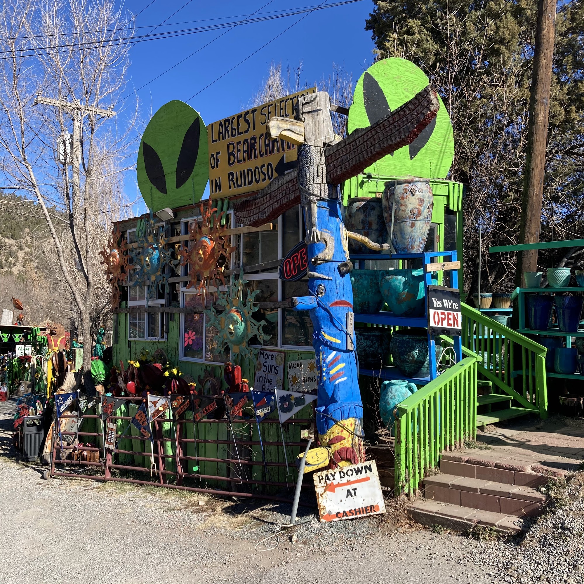 Bears "R" Us is a well-established shop in Ruidoso that specializes in handmade wood carvings, especially bears, crafted from pine, cedar, and other local woods. The shop offers a wide variety of sculptures, including bears, aliens, animals, pop culture figures, and religious pieces, along with imported items from Mexico such as cedar furniture and pottery. The selection is extensive, with options in all price ranges, making it a popular stop for tourists and locals alike. Customers have praised the friendly and helpful staff, noting their willingness to assist with questions and provide discounts, especially during sales events like Black Friday. Many visitors appreciate the shop's unique and high-quality merchandise, and some have even had items shipped directly to their homes, arriving in excellent condition. The shop is also known for its long-standing presence in the area, having been around for decades, and is considered an entertaining stop for families and children. Visitors have enjoyed browsing the diverse collection, finding perfect souvenirs, and discovering that many of these carved bears can be seen in homes across Texas and beyond. Overall, Bears "R" Us is recognized as a must-visit destination for those seeking handcrafted wood art and a memorable shopping experience in Ruidoso.