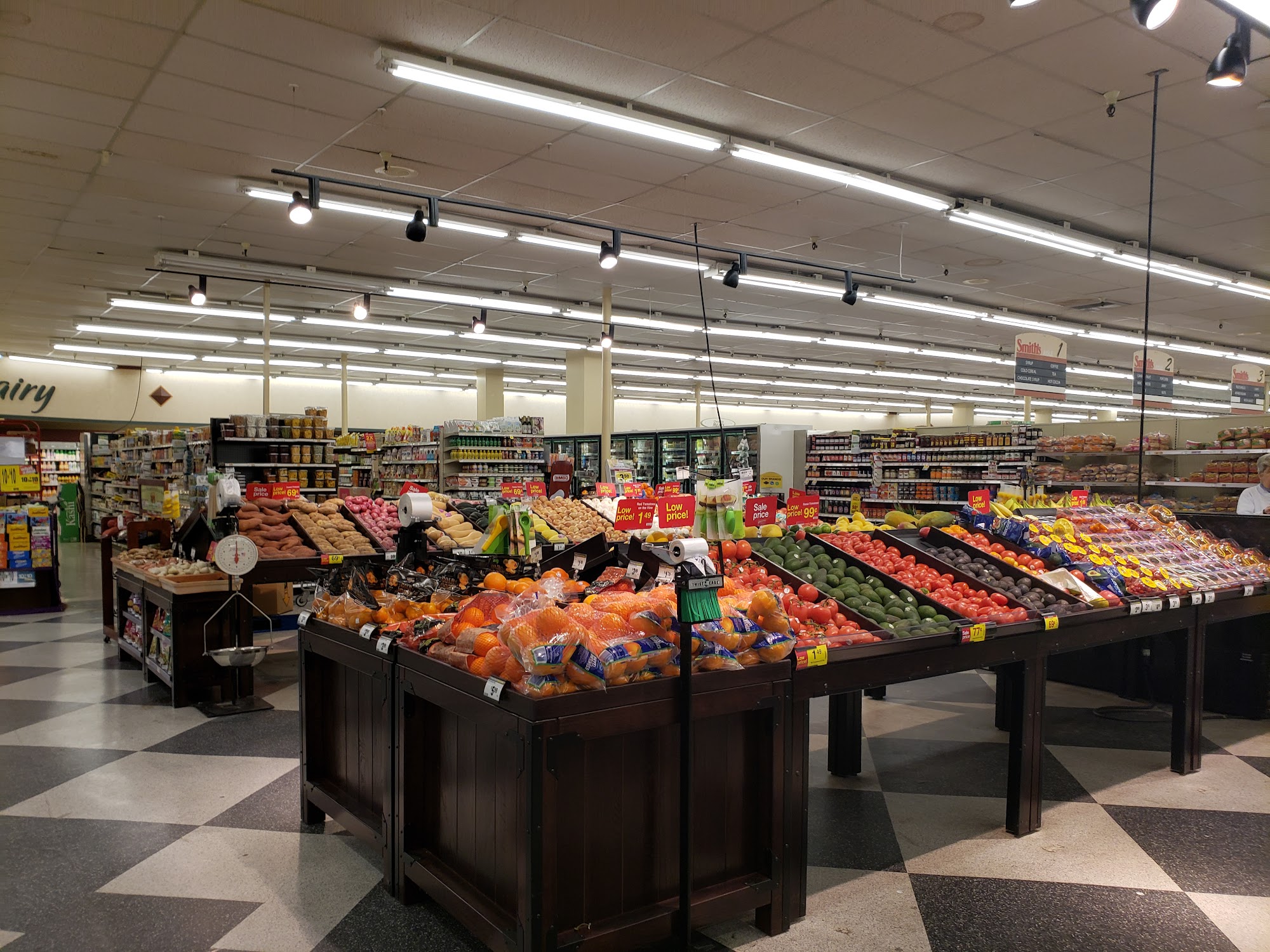 This Smiths is like an upscale Walmart with a full department store in ouring shoes, clothes, sporting goods, liquor store plus a normal grocery store. It has the vibe of a quality King Soopers on the grocery side.