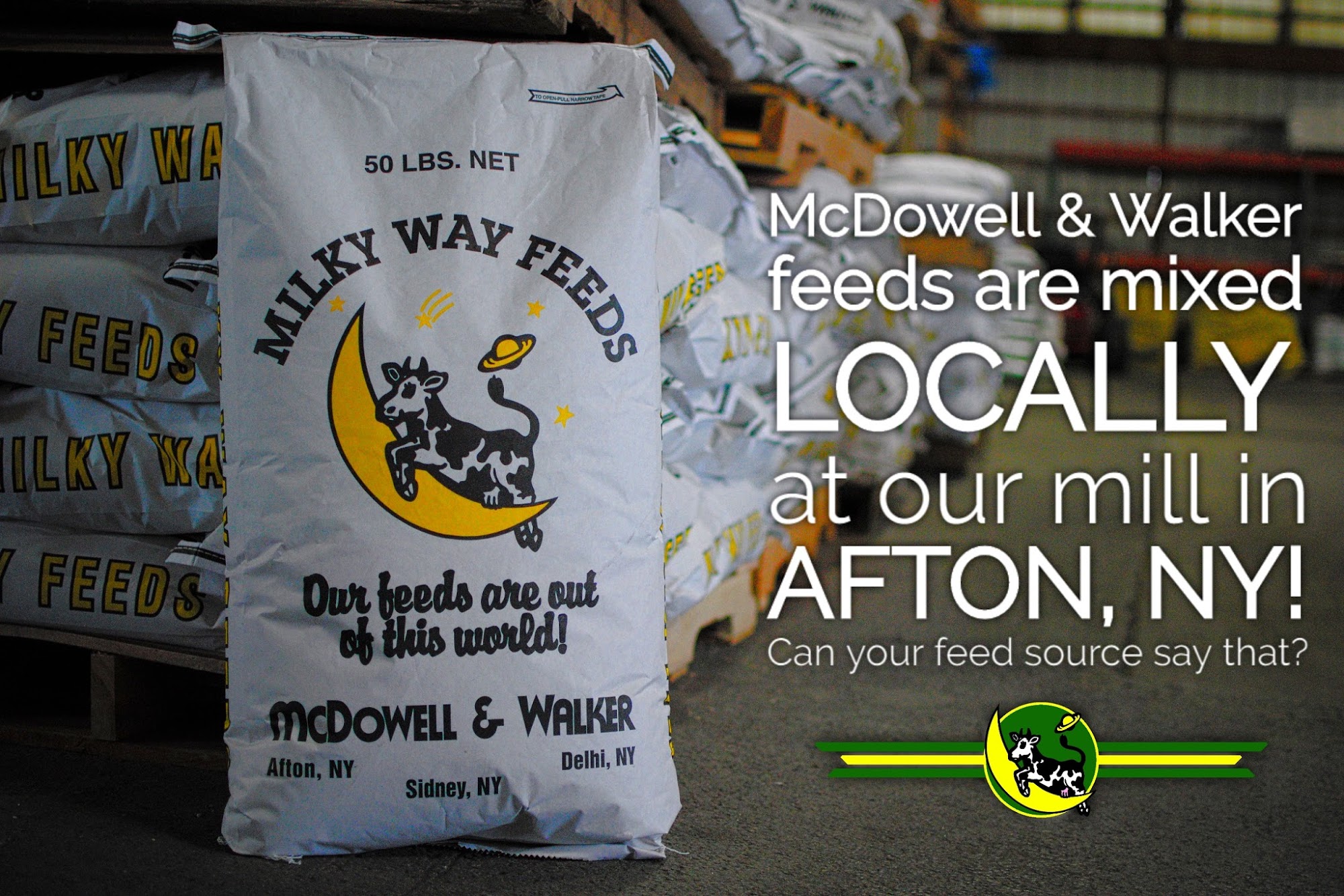 Feed mill with bulk feed delivery and store for bag feed purchase