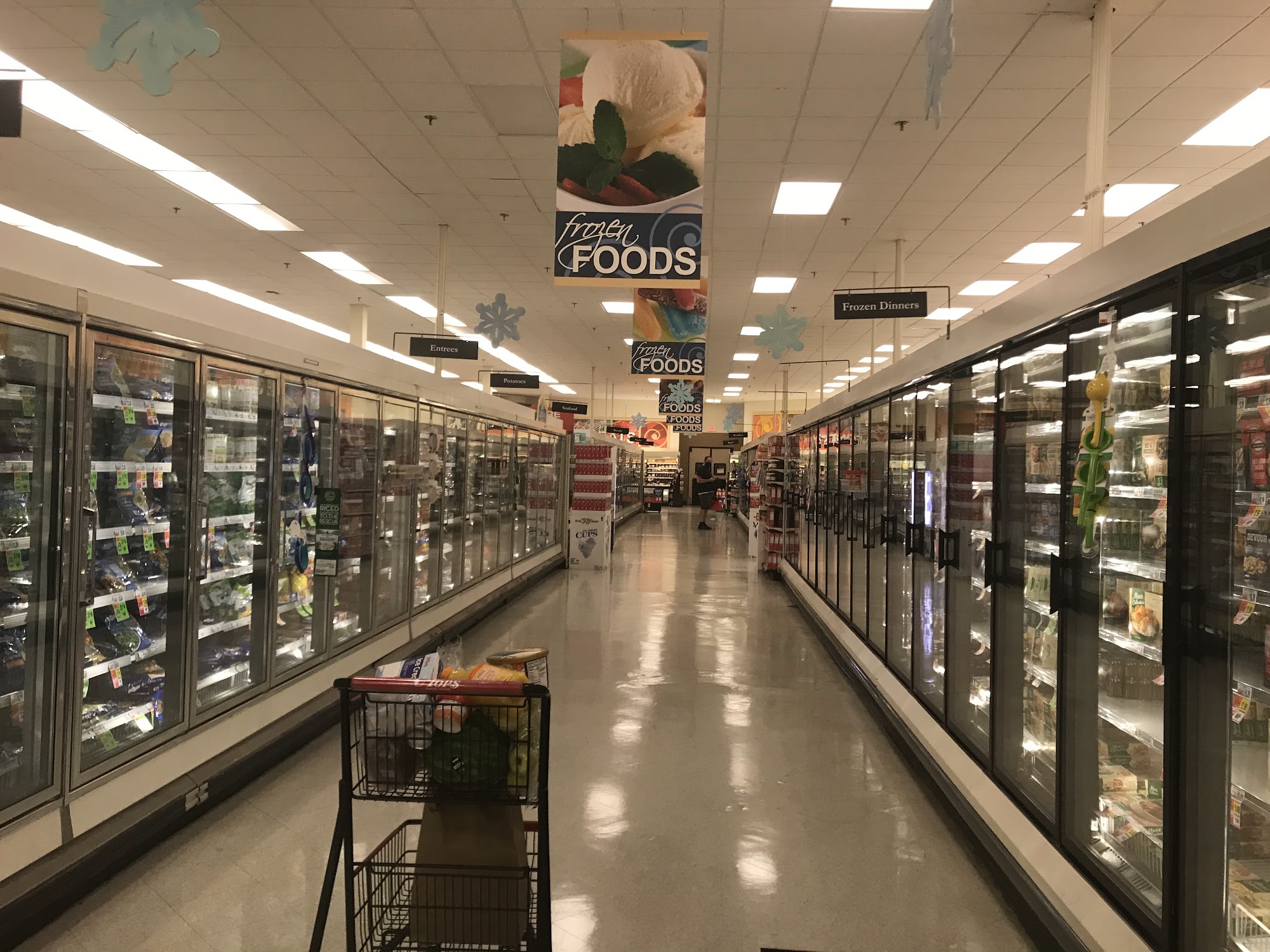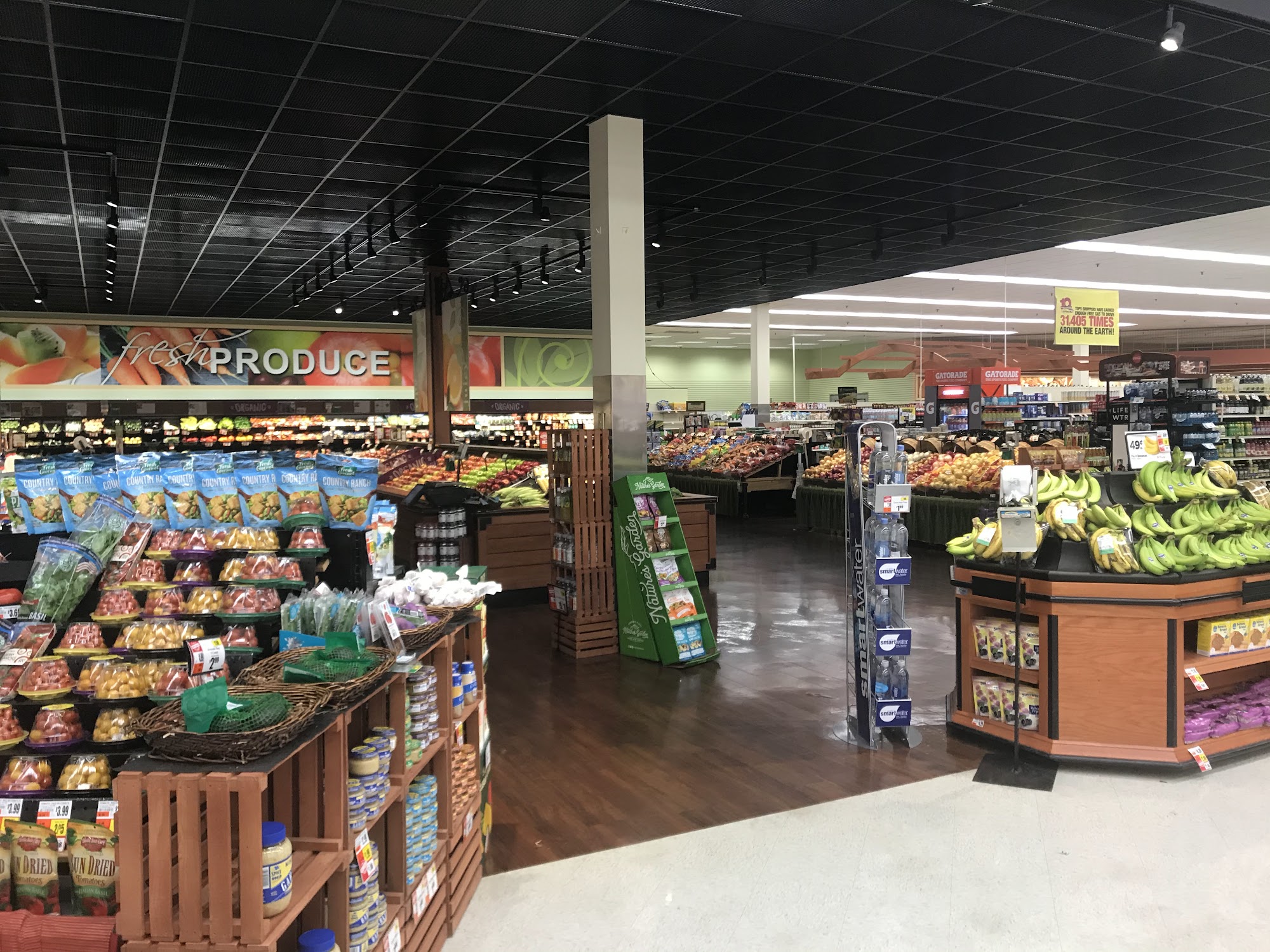 Tops Friendly Markets is a great store where everyone is very helpful. The best thing is it is never too crowded, allowing in and out shopping easily with self checkout. A recent remodeling created a different, more expanded atmosphere. Services include check cashing and bottle returns inside, and a Tim Hortons is in the store. However, some note it is not a clean environment, with garbage overflowing and boxes in lanes. At times, shelves need stocking and staff can seem stressed or rude.