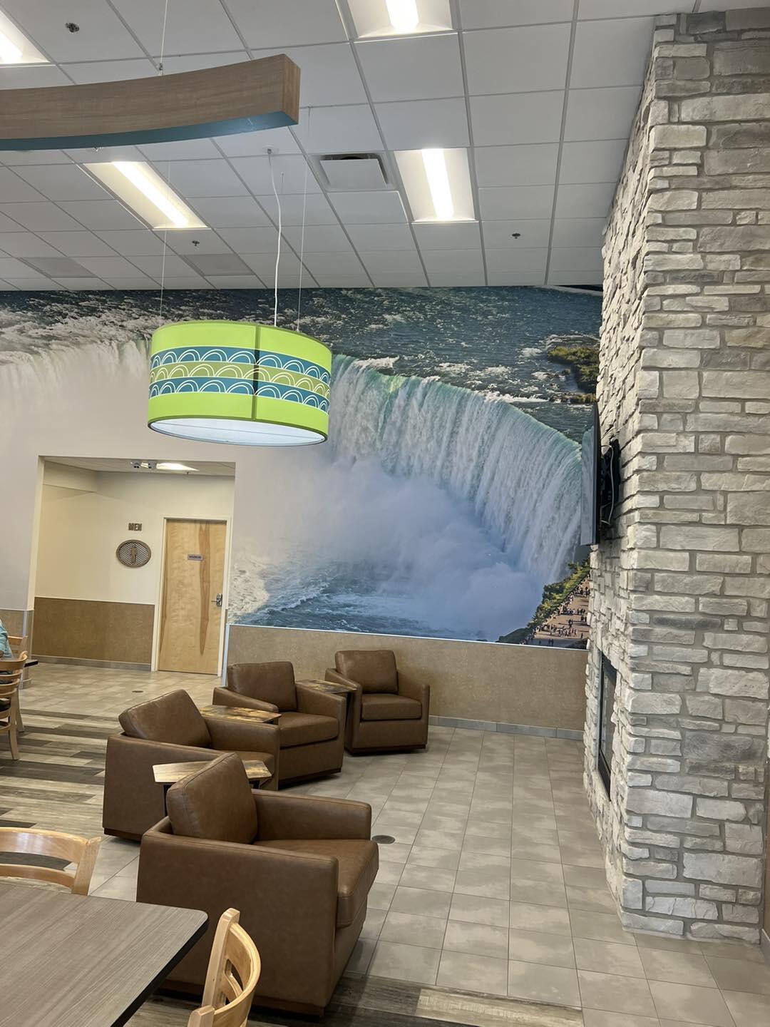 Very bright inside. They have a Tim Hortons. The employees who smoke at the front entrance smoke so close to the door I can smell the cigarettes throughout the store