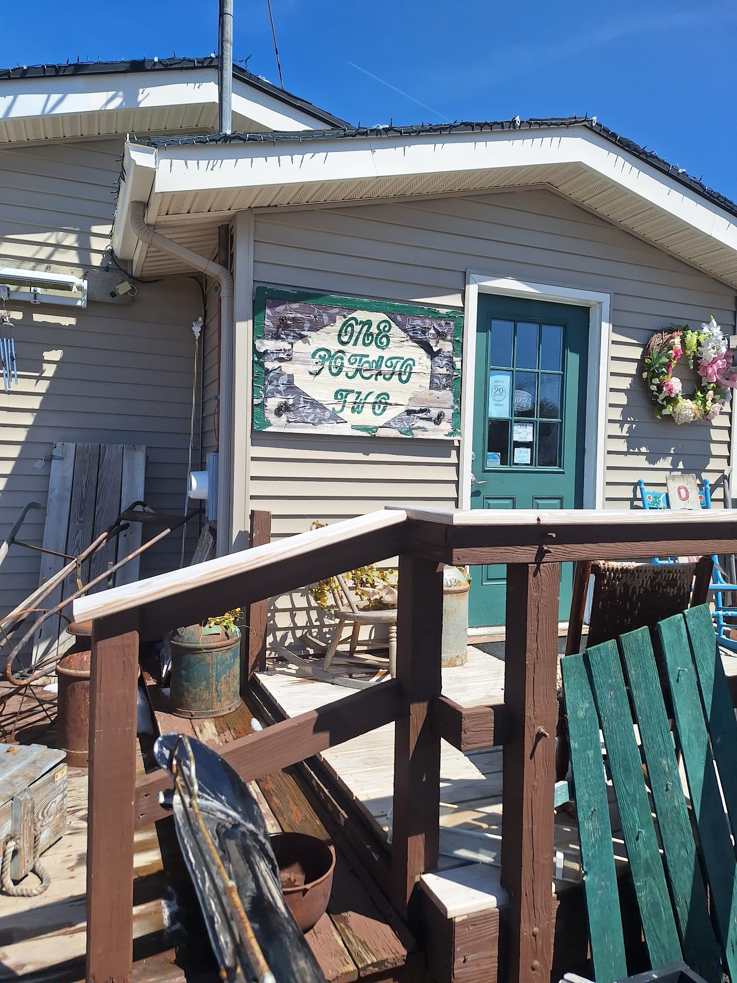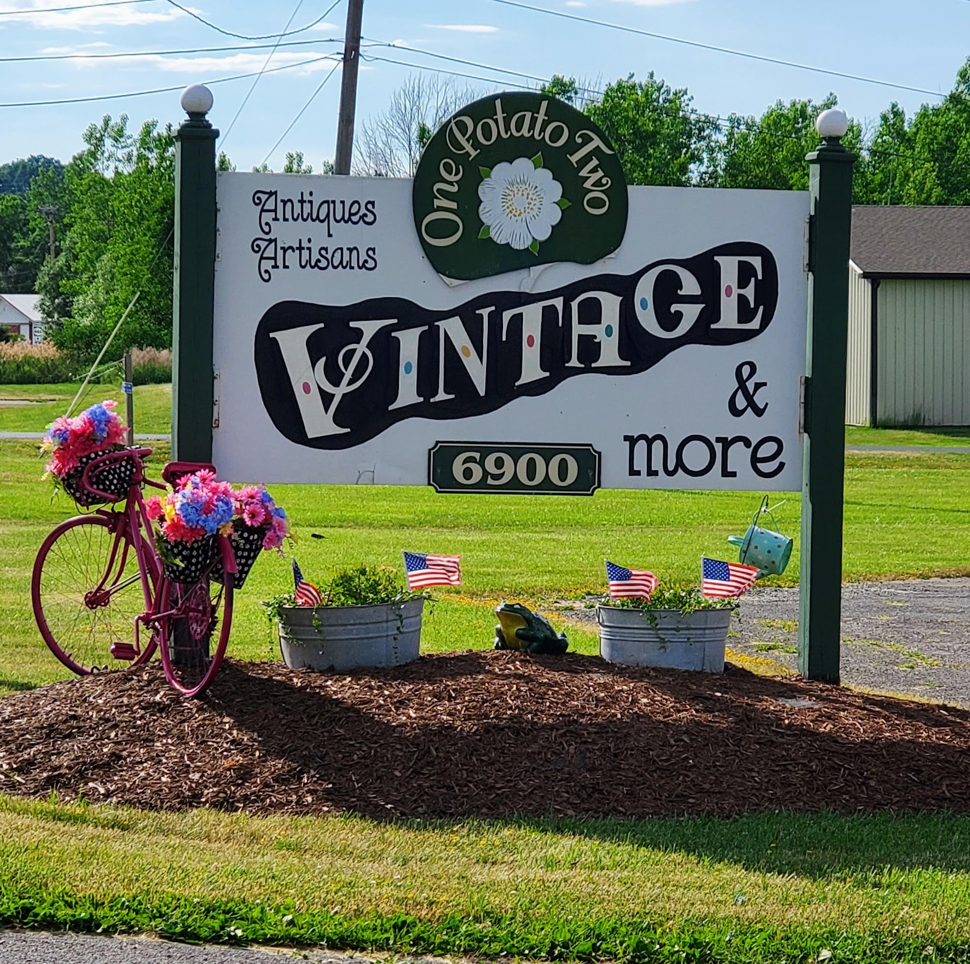 Welcome to: One Potato Two A Vintage Eclectic Emporium featuring Antiques, A Variety of Vintage, Books, Furniture, Jewelry, Pottery, Primitives & A Bakery to go! Join us, ( 70 + dealers & Artisans ) for a day of shopping in a 7400 square foot Congenial Atmosphere along route 5&20's Country Mile. We are open every day and the coffees always on!!