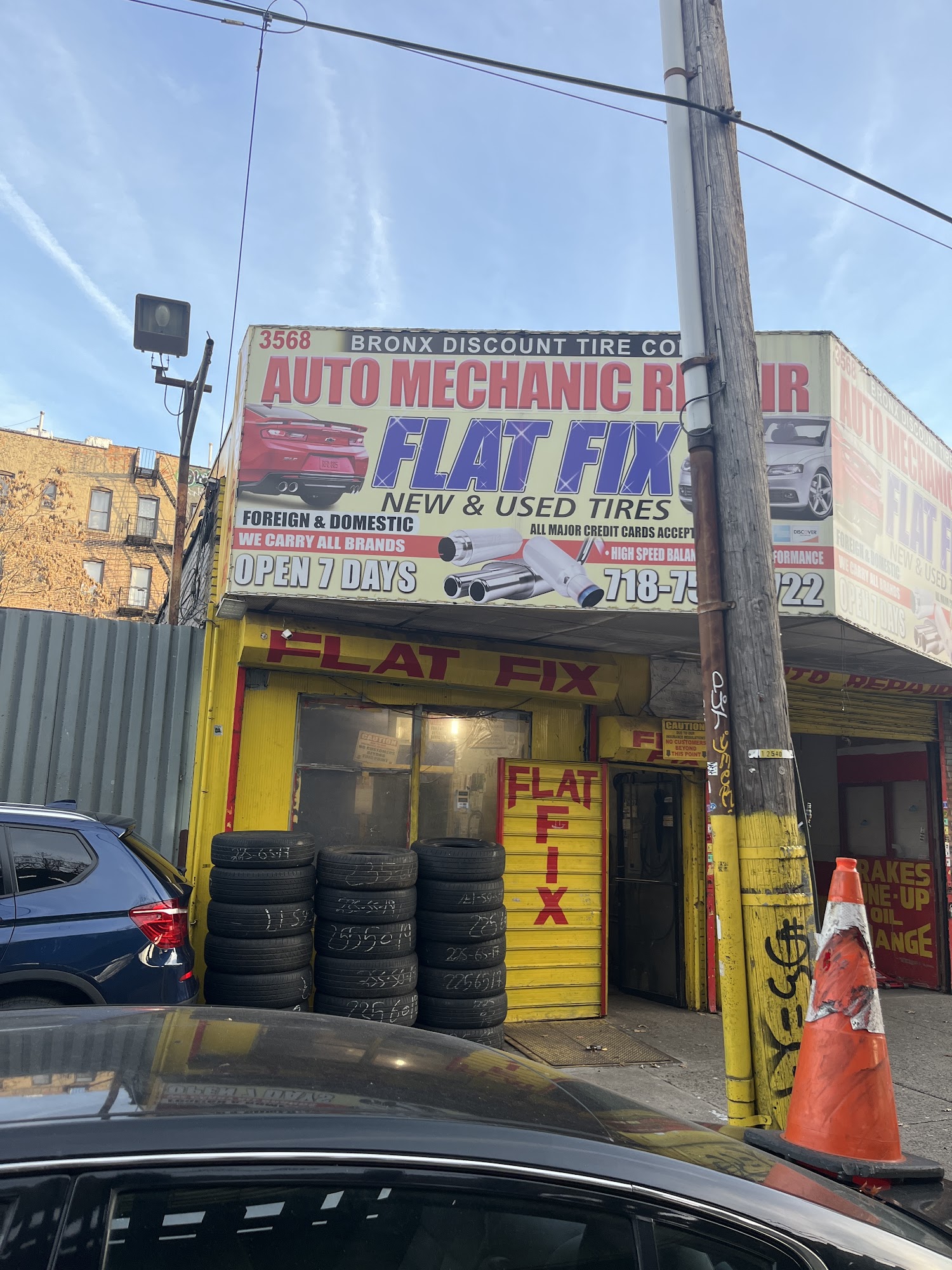 Tire Shop under new management. You will see the nicest Tire shop/ FlatFix spot in all of New York City, meanwhile this is what we offer in our store: Tires: NEW TIRES, 75$-300$ (depending on size) each USED TIRES, 30$-75$ (depending on size) each FlatFix: Patch: 20$-25$ each Plug: 10$-15$ each Rim sealer: 15$-35$ each (Depending on rim size) Valve: 15-25$ each Tire balance/ High-speed balance: 10$-20$ per tire Also We carry some different varieties of rims (Steel/aluminum) Shop address: 3568 Jerome avenue Bronx New York 10467-1006 Phone number: 1 (914) 439-8655 Feel free to contact us for any issue, and hopefully we can be of help to our amazing customers. Stay safe out there. Signing off: 04/17/2022 Sunday 2:53pm.
