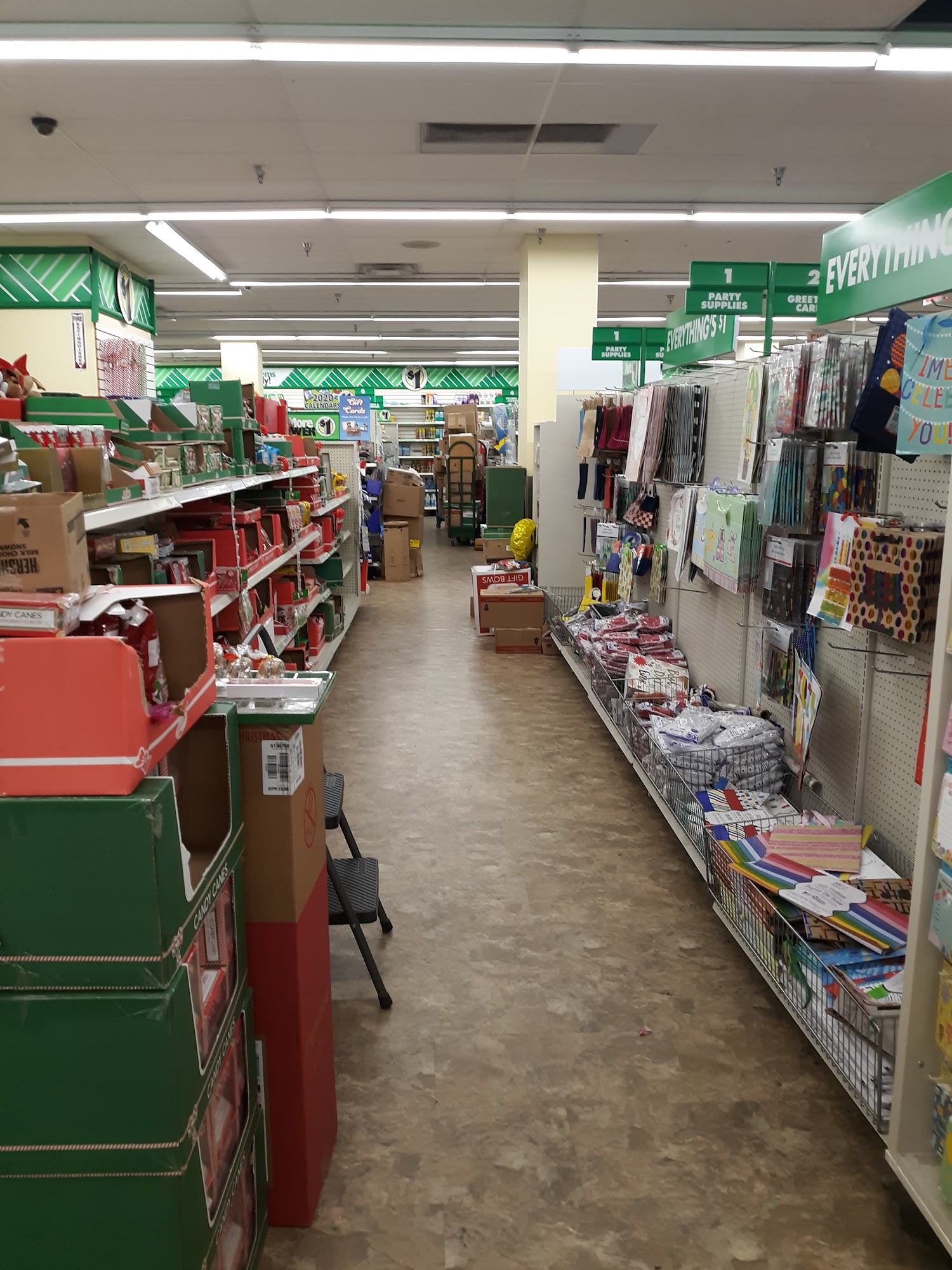 This location is bigger. And is usually stocked. Liked the juicy juice brand 4 kids boxes 100 percent pure juice for 1.25. Candles Birthday parties stuffs and bleach laundry detergent are also available