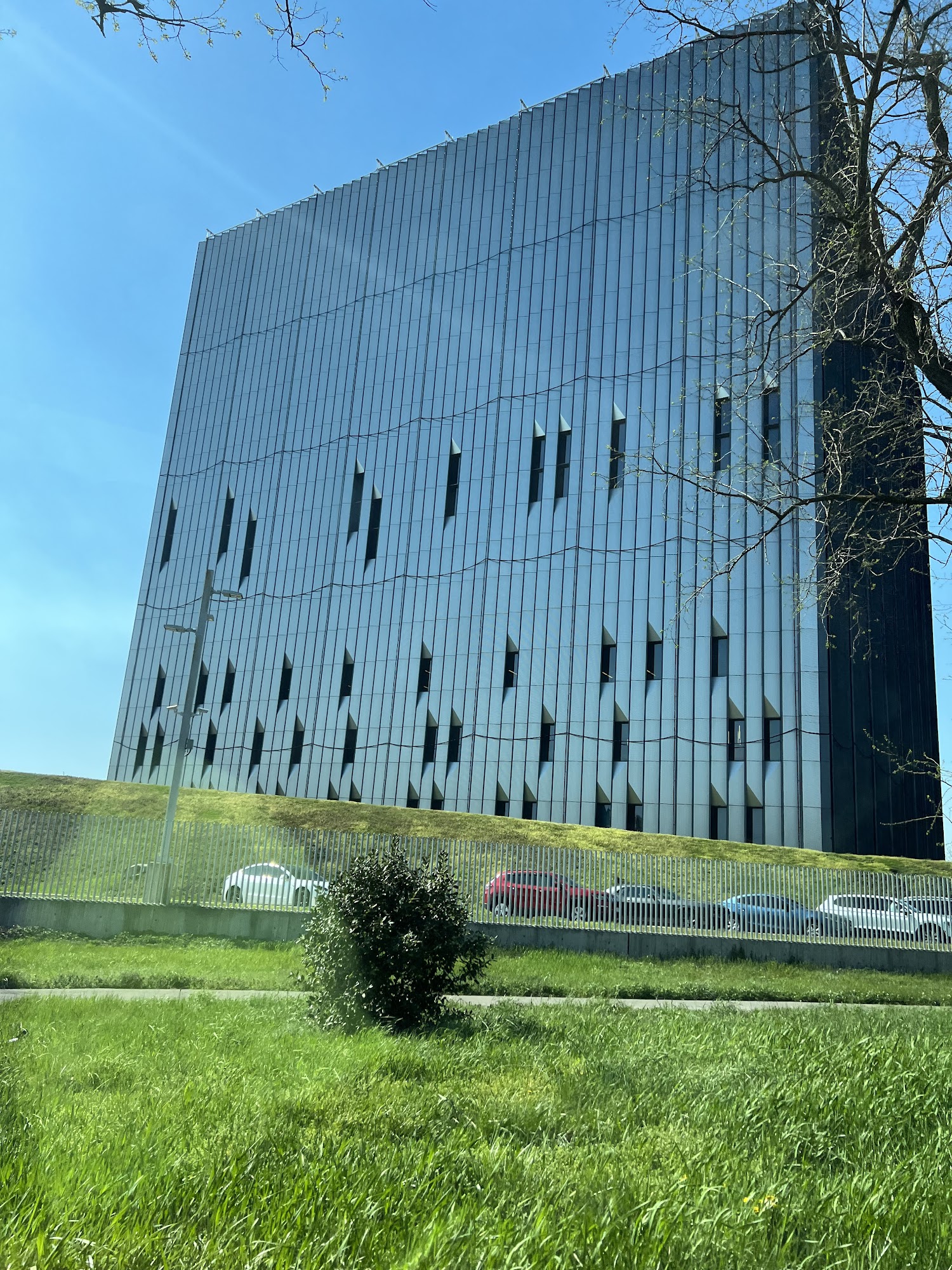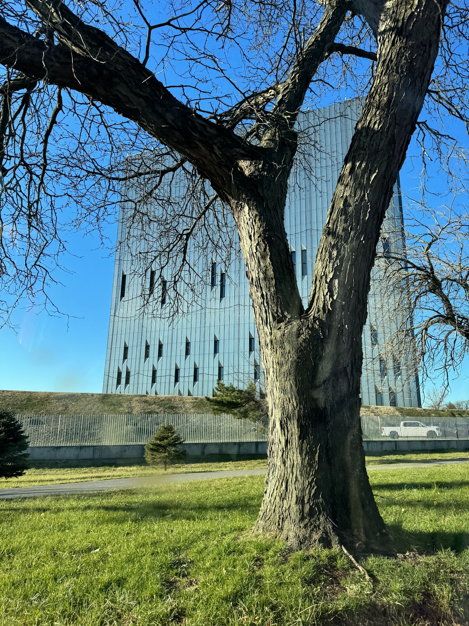 I did a double take seeing this from the Amtrak train. Wasn't sure if I was dreaming. Props for a building delivered straight from a sci-fi/dystopian novel.