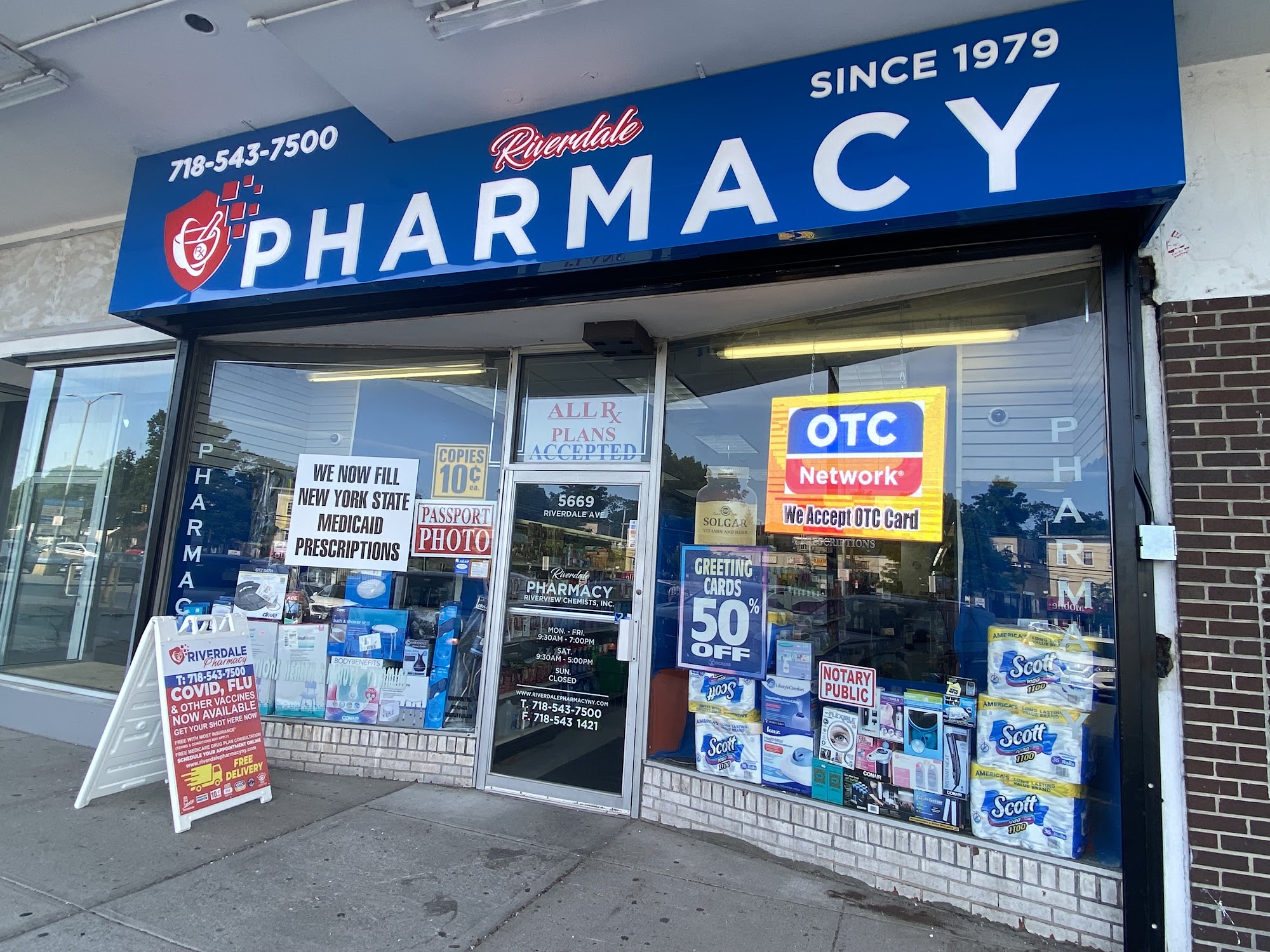 Riverdale Pharmacy offers a "Neighborhood Friendly Personalized Service Since 1979." They provide COVID boosters and vaccines, COVID therapeutics (COVID pill), DMV eye tests, passport photos, free delivery, notary public, photocopying, and greeting and gift cards. The staff is described as friendly, helpful, courteous, gentle, and informative. Customers have had quick, easy, and hassle-free experiences with the professional and caring service. The pharmacy is praised for its efficiency, speed, and attention to detail when handling prescriptions. Customers feel lucky to be long-standing customers of Riverdale Pharmacy.