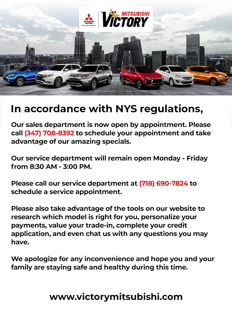 Victory Mitsubishi and Pre-owned Super Center in the Bronx is a highly rated dealership known for its large selection of over 450 cars, including new Mitsubishi models and luxury used cars from brands like BMW, Mercedes-Benz, and Audi. The dealership offers a friendly, no-pressure environment and makes car buying easy with special financing options for all credit types. Customers praise the staff for their helpfulness, honesty, and smooth process, with many mentioning staff members like Ishmel, Adrian, and Brianna for their excellent service. Visitors appreciate the welcoming atmosphere and the ability to find the perfect vehicle at a good price. The dealership is committed to providing trusted service, unbeatable deals, and a wide selection of both new and pre-owned cars, making it a top choice for those seeking a reliable and stress-free car buying experience.