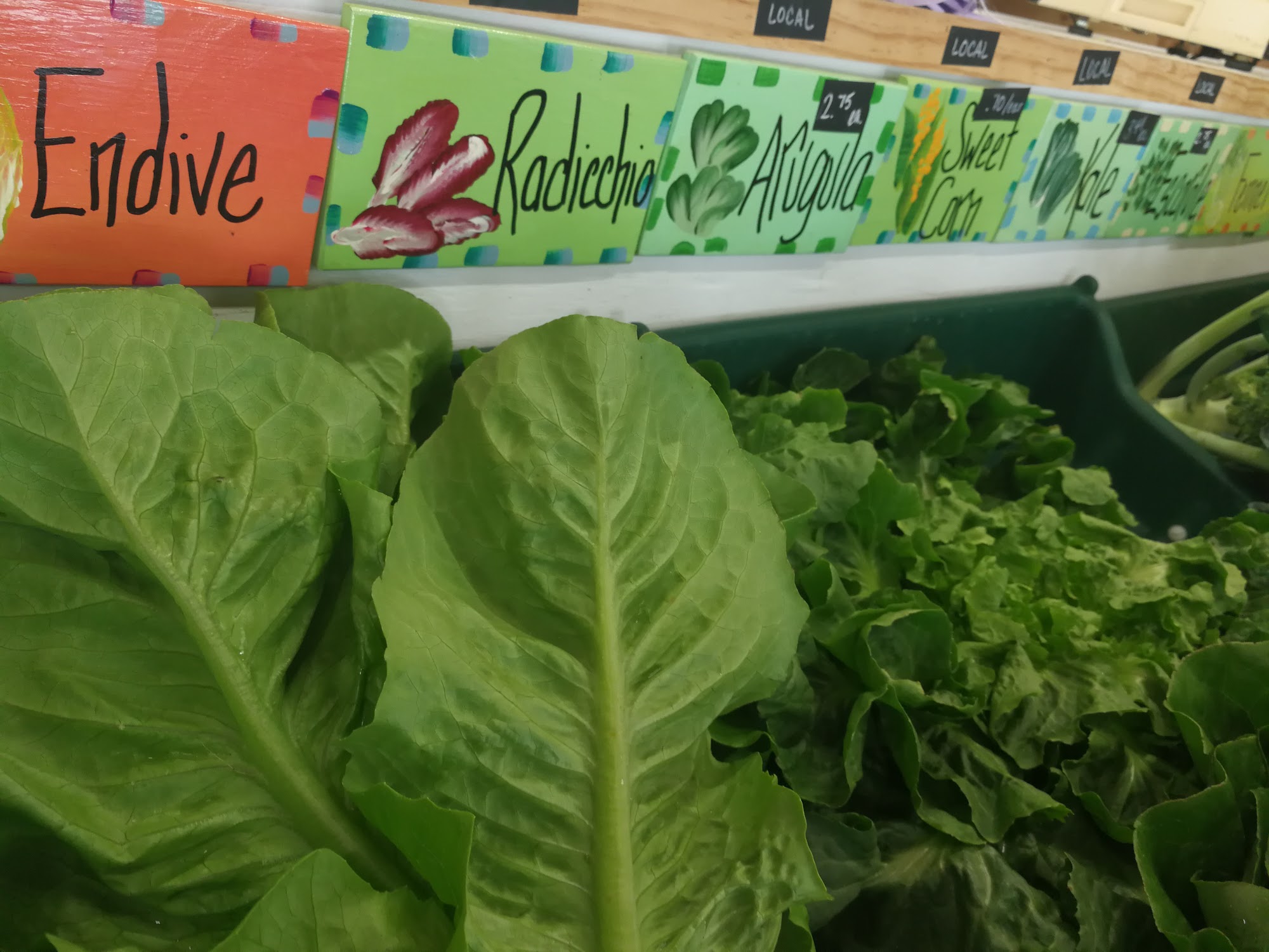Nice, selection of in season fruits, herbs and vegetables good customer relations and beautiful views of farmland