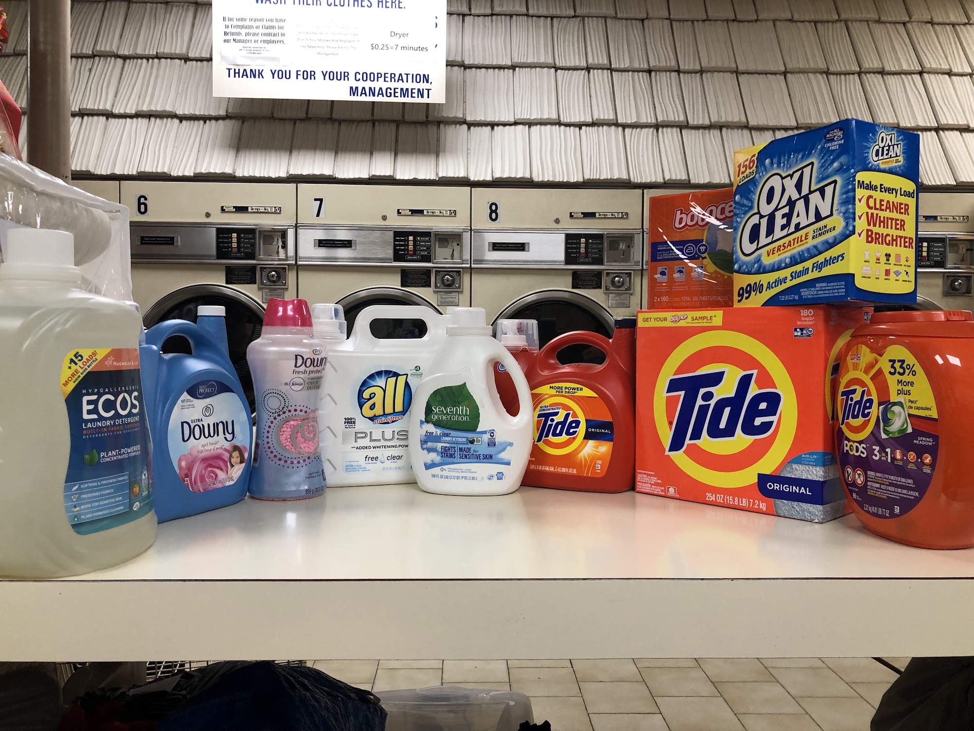 Helpful staff, always machines open, coin machine & you can buy detergent or tide pods if you forgot!