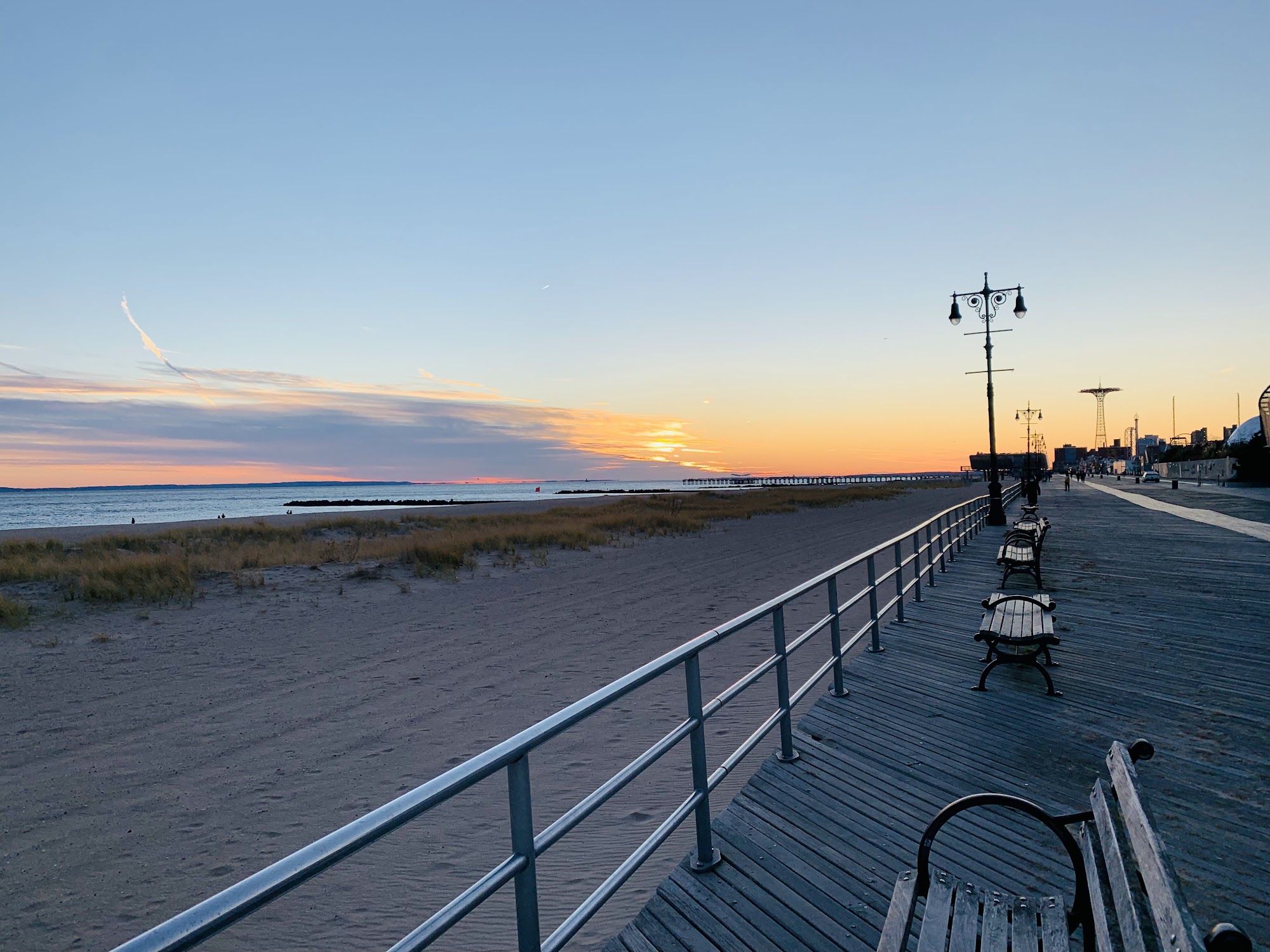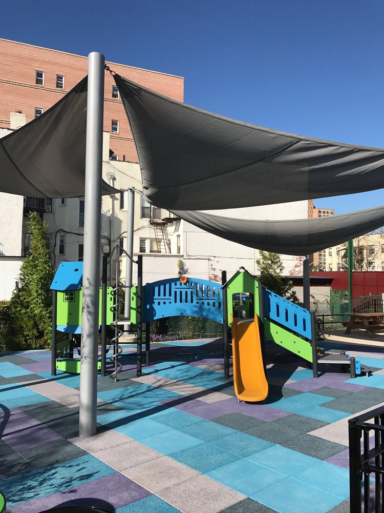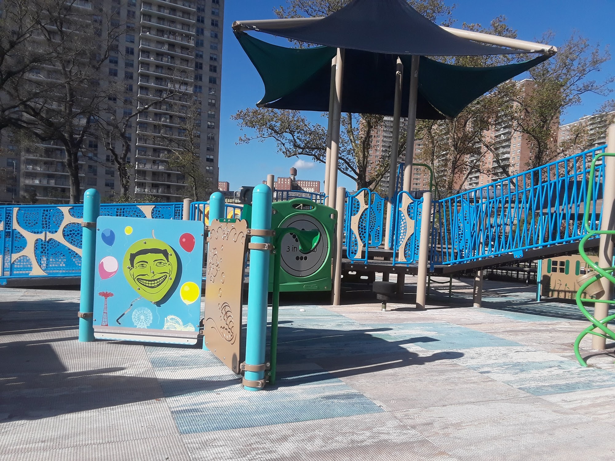 Asser Levy Park is a small, quiet, and clean park. It is great for kids, with a playground, swings, slides, and a sprinkler. The field is very large. There are multiple benches and tables for a picnic or quick lunch. It is a dog-friendly place for walking a puppy. The park is good for activities like riding a bike, jogging, and using the outdoor gym. It is near the beach. A magnificent stage is there, and lots of bands played in the summer years ago, though it is quiet and empty when not in use. There are restrooms, but they are noted as not very clean. On sunny days, care is needed as the playground has no trees.