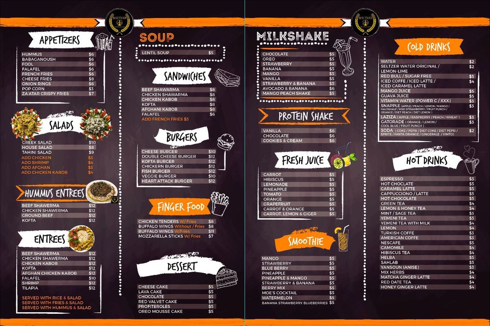 Food is amazing, hookah is amazing and the smoothies are so good. Service is incredible and they always take care of you with your hookah. And the vibes are great