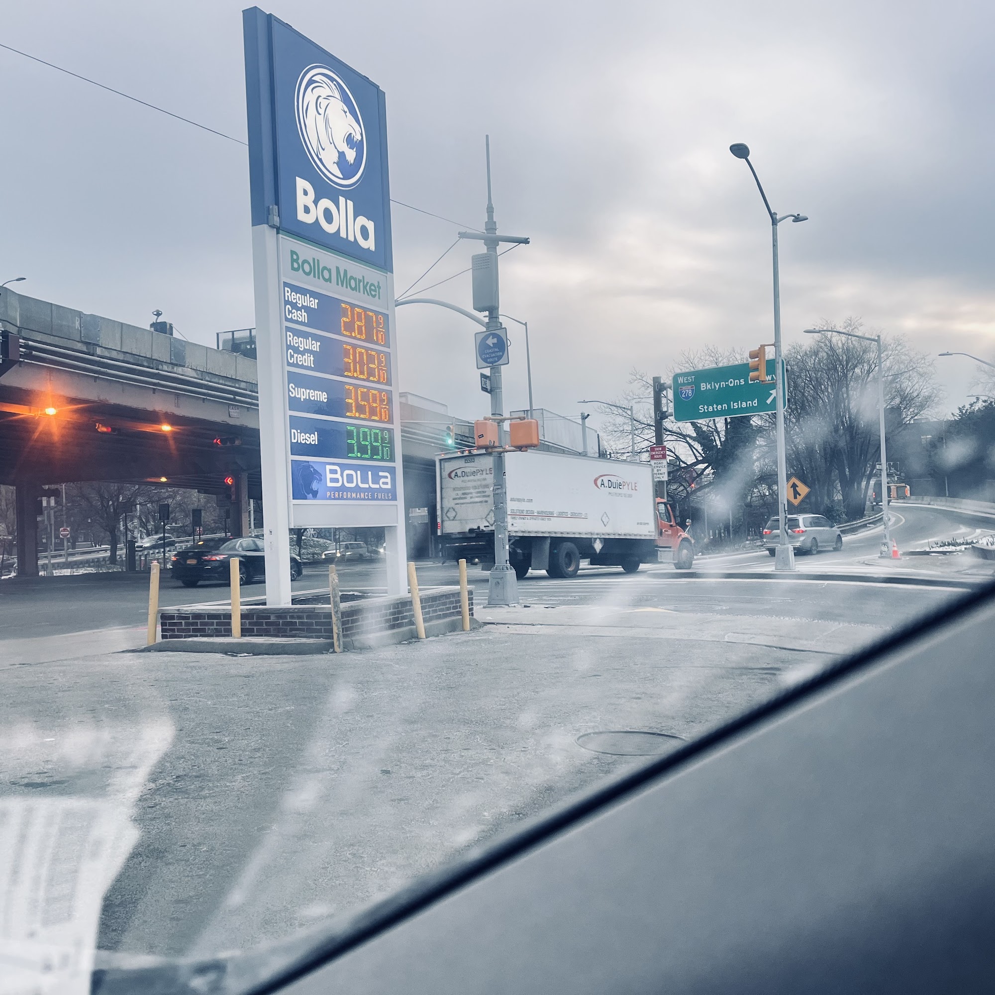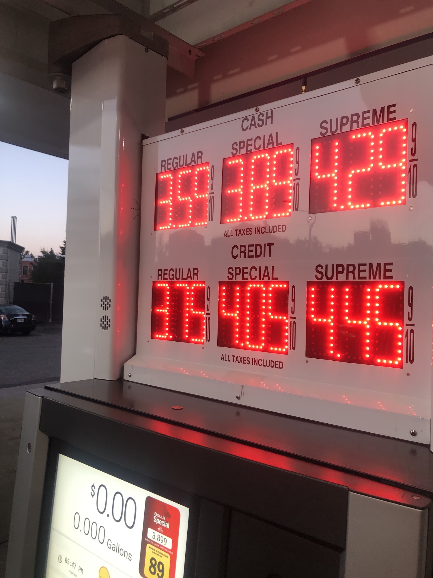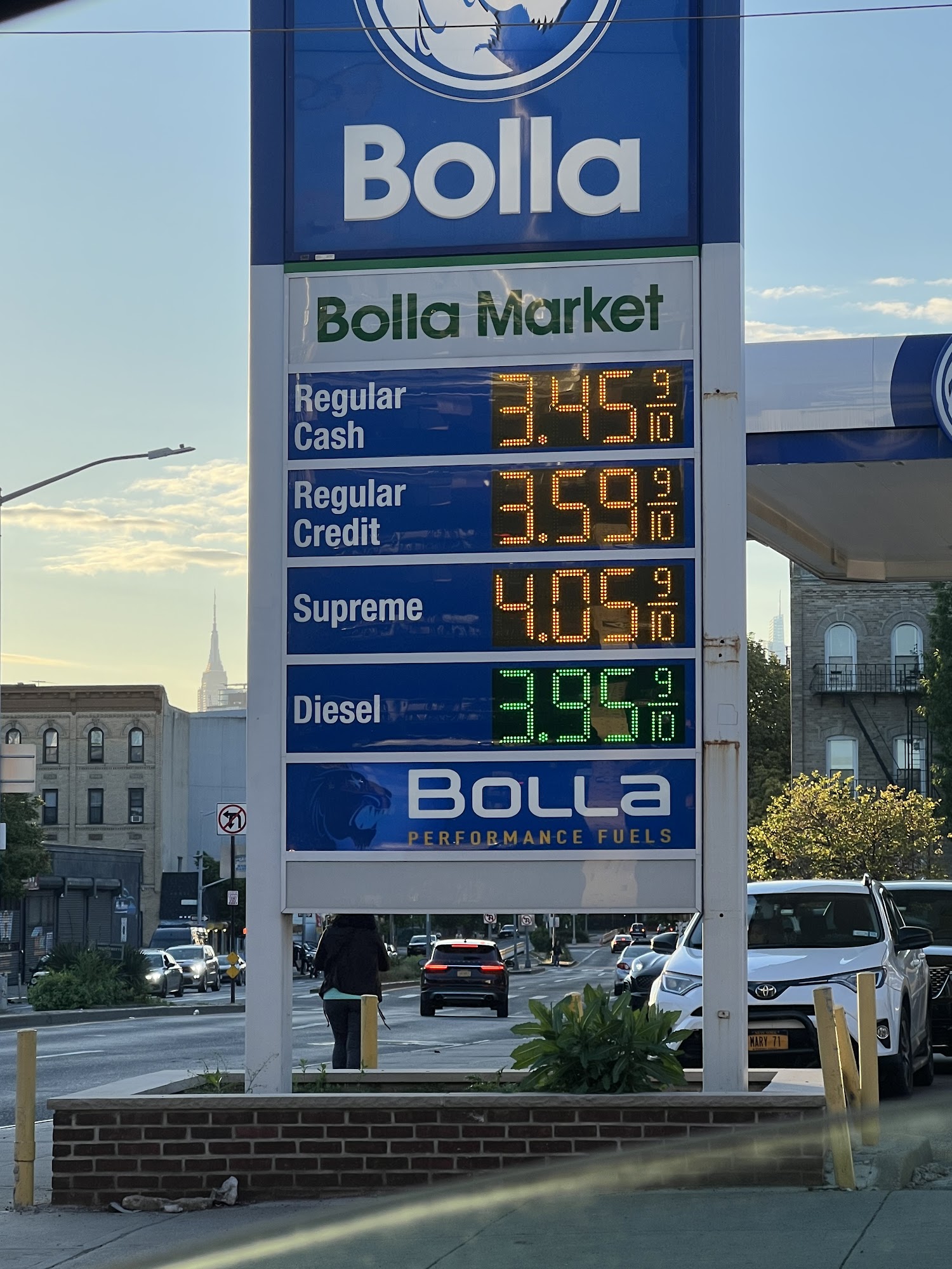 Bolla Fuels offers the cheapest gas in town with good and low prices. The station is mostly busy all the time and often packed. It is a self-service station where cash pays less than credit. The location doubles as a Burger King and has a spacious inside with a good market, offering great beverage and snack selection, and good food. The atmosphere is great and the service is good and very clean. It has an air machine for tires requiring a quarter. The gas machines feature big touch screens.