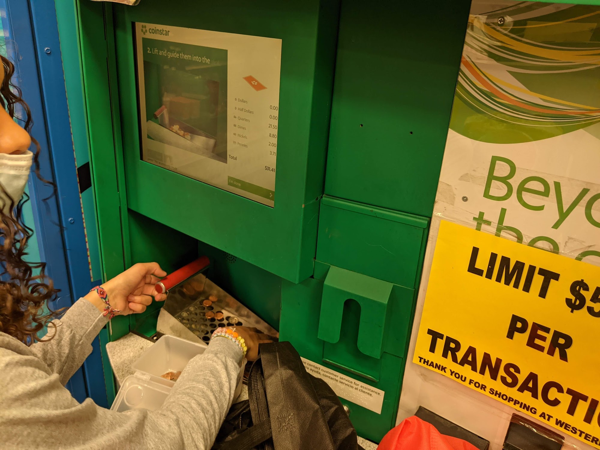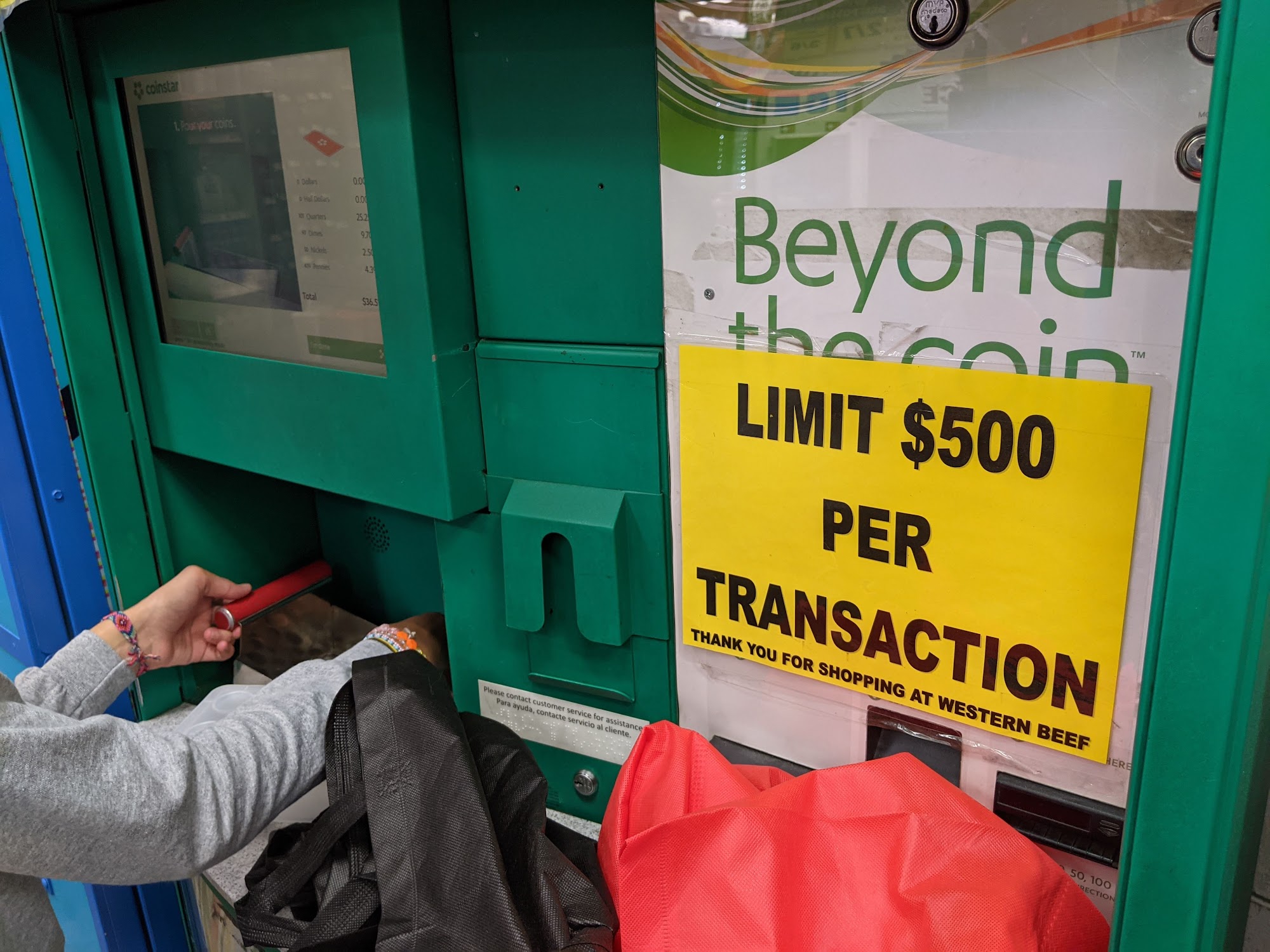Machine is working, .50 cent fee and 12.5% of change.