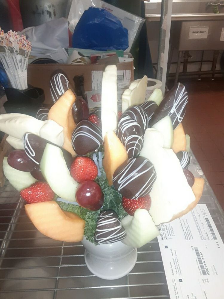 Edible Arrangements is a gourmet gift shop offering a variety of fresh fruit arrangements, bouquets, baskets, and platters. These are brimming with tempting delights such as chocolate-covered strawberries, assorted dipped fruits, cookies, and other enticing desserts. The shop is complemented by flowers, bakery items, balloons, and gifts, making it perfect for birthdays, anniversaries, or just indulging oneself. It is also ideal for corporate gifts, Valentine's Day, Mother's Day, or any occasion. The business provides convenient catering and delivery options, including same-day and one-hour services, ensuring availability for any event. Many customers report a great experience and recommend the shop. Reviews highlight that the fruit is fresh, a definite 10/10, and the best chocolate-covered strawberry ever had, with a perfect balance. The chocolate-covered fruits, including pineapples and Granny Smith apples, are noted for having the chocolate stay attached well. The shop is described as clean, with impeccable attention to detail. Staff members are commended for their patience and for helping with purchases and special requests, ensuring customers get what they ask for. One reviewer states they have never been disappointed after many orders and would recommend this location for all needs.