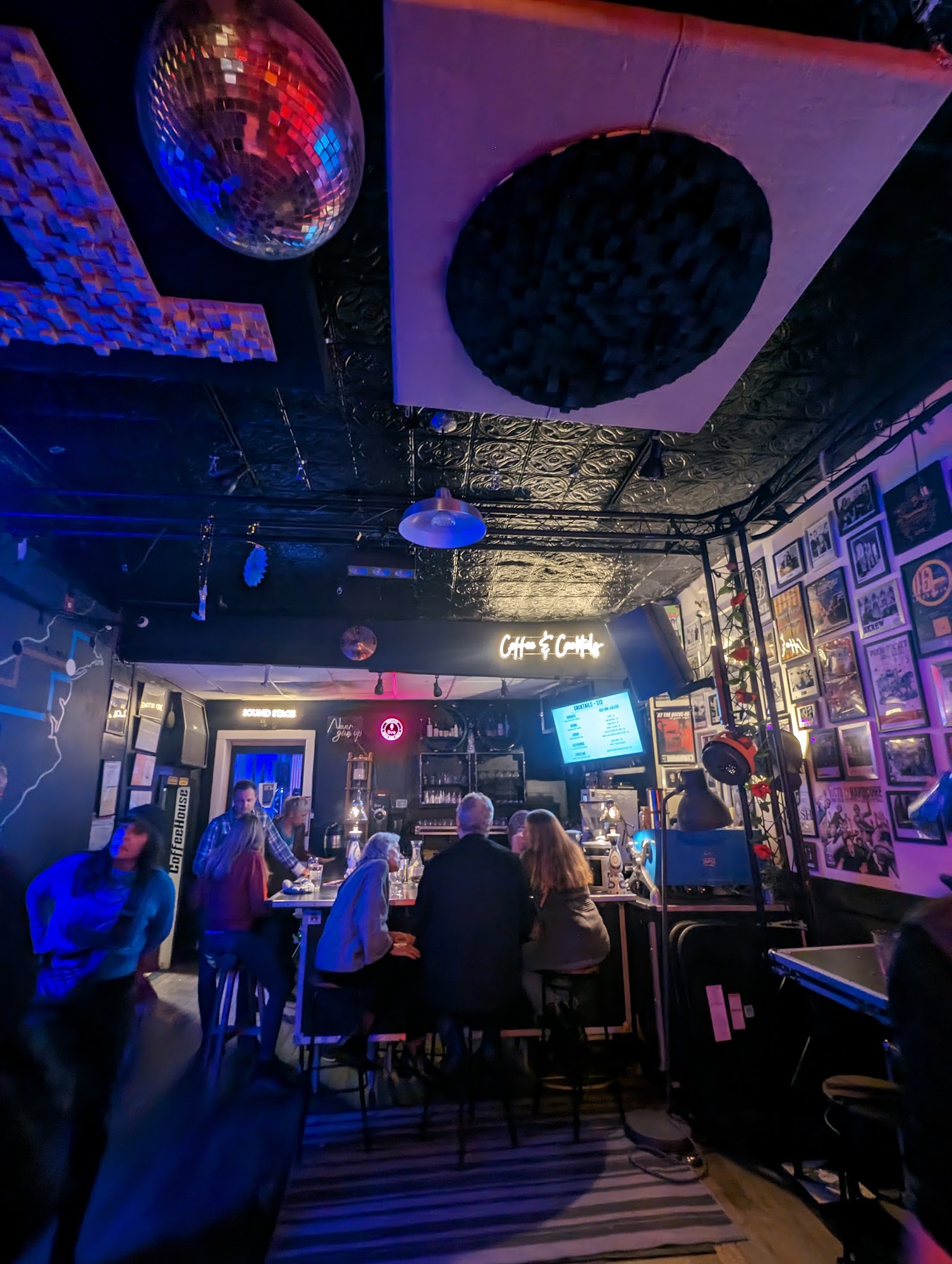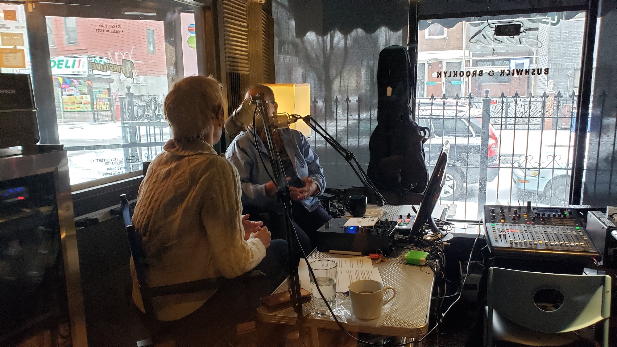 Our storefront is a Coffeehouse and Video Production Studio in Bushwick Brooklyn. Book a DAYTIME VIDEO or AUDIO SESSION with us! Our purpose is to help artists and content creators record affordable, high quality content in a cozy coffeehouse environment. The sound stage includes NEVE, SSL, API, and Midas microphone preamps. full backline, studio lighting, green screen capabilities, 4K and 1080P video recording and streaming. The lounge features a full service craft cocktail and coffee program.