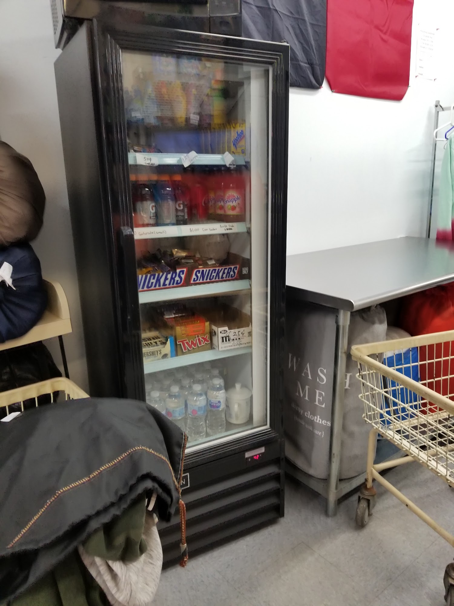 Old disheveled spot so feels weird cleaning your bed linens in here but it's cheap and open late night + the machines work.
