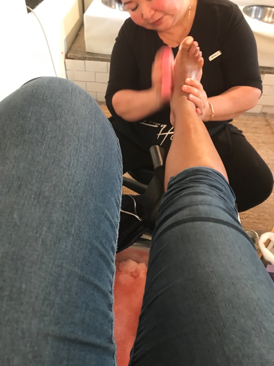 Only place that offers an all around foot gel pedicure! You soak your feet in this amazing gel that helps exfoliate your entire leg :)