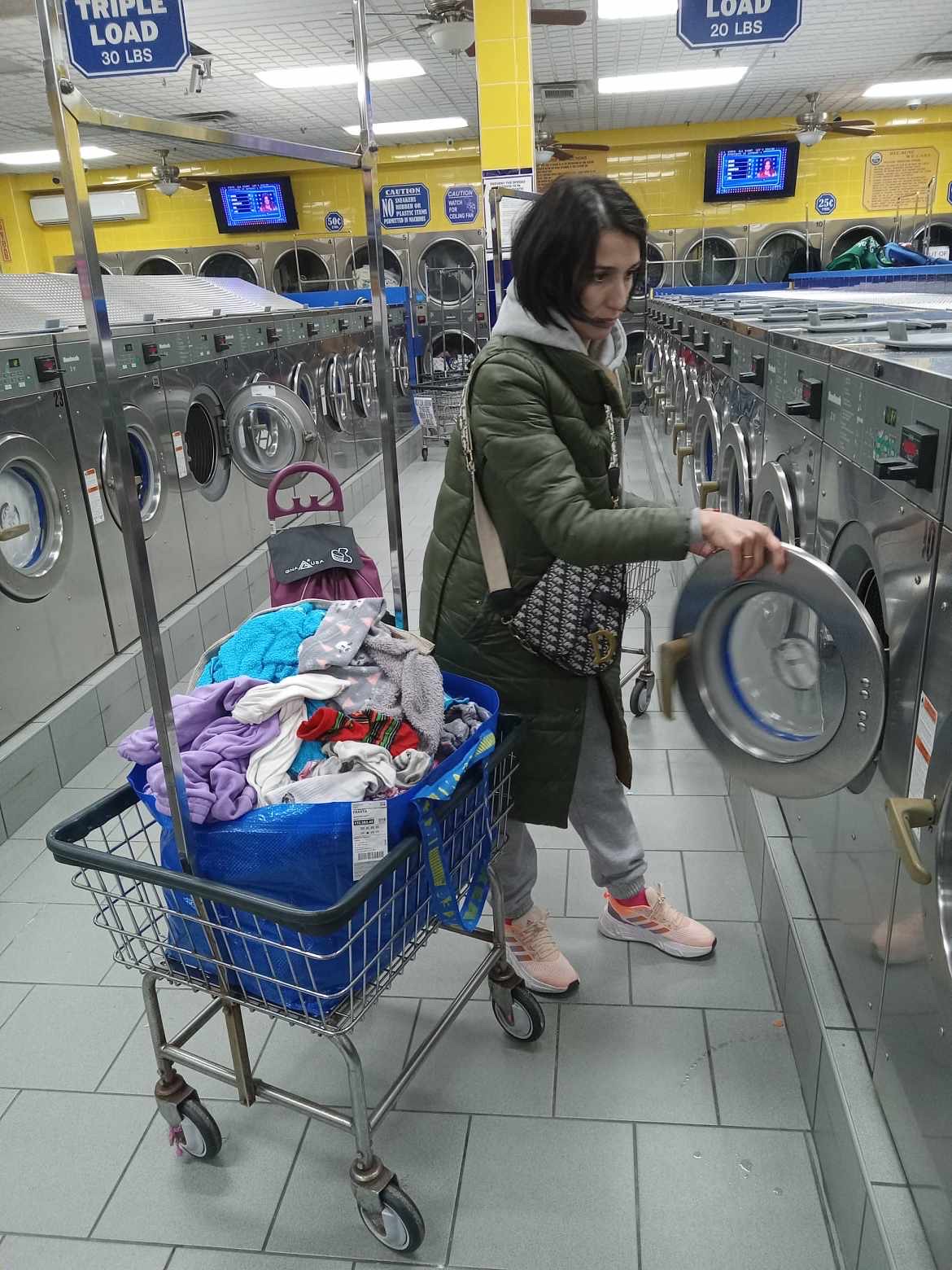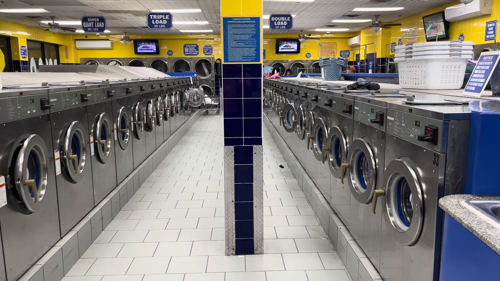 I always go early morning to avoid the crowds and to dont wait for a machine, early like 5am its really empty, the guy at the store is always cleaning and very gentle. Lots of whashing machines of all sizes and dryers, with very good prices. I really like this place. Highly recomended! ☺️