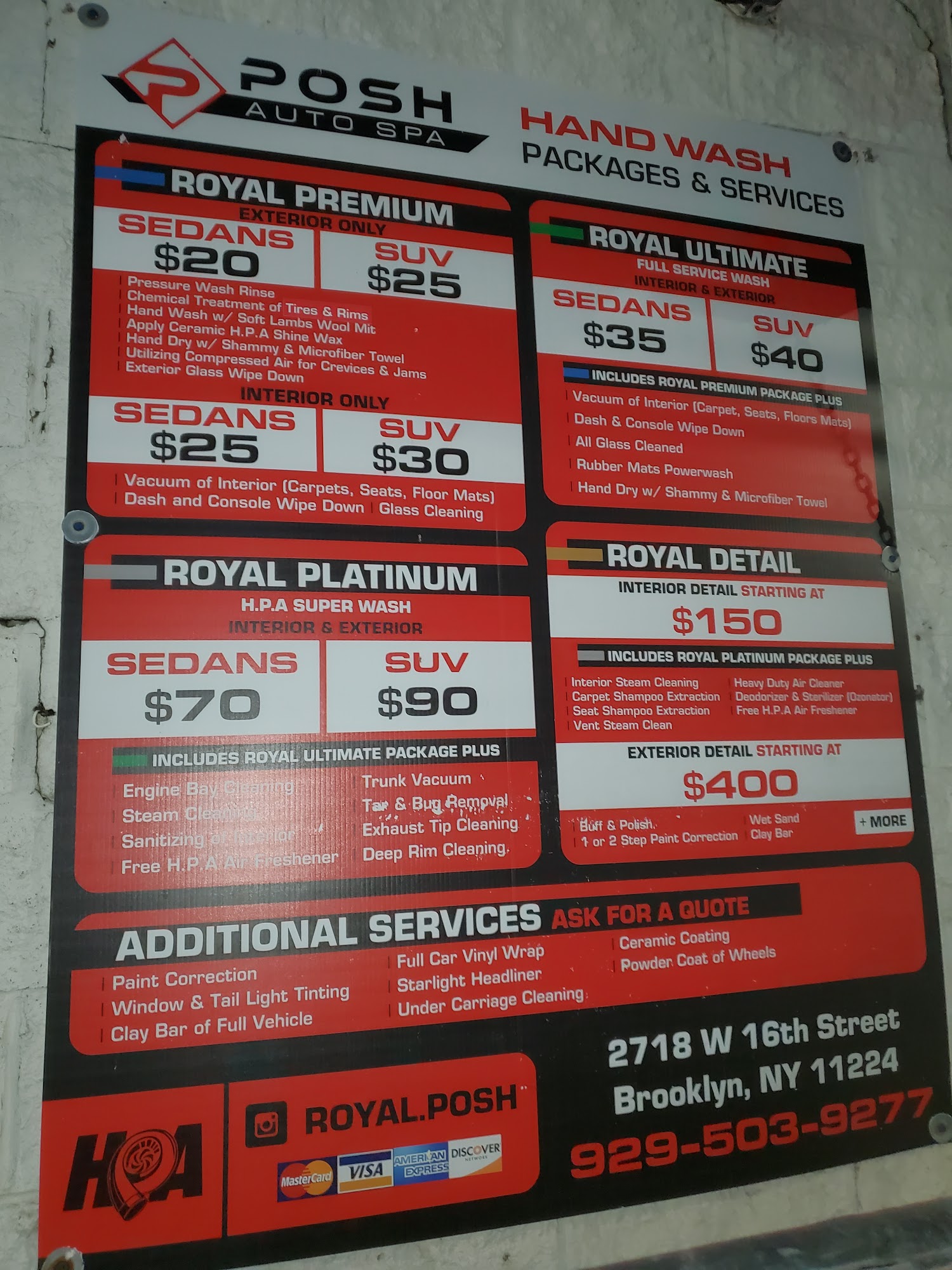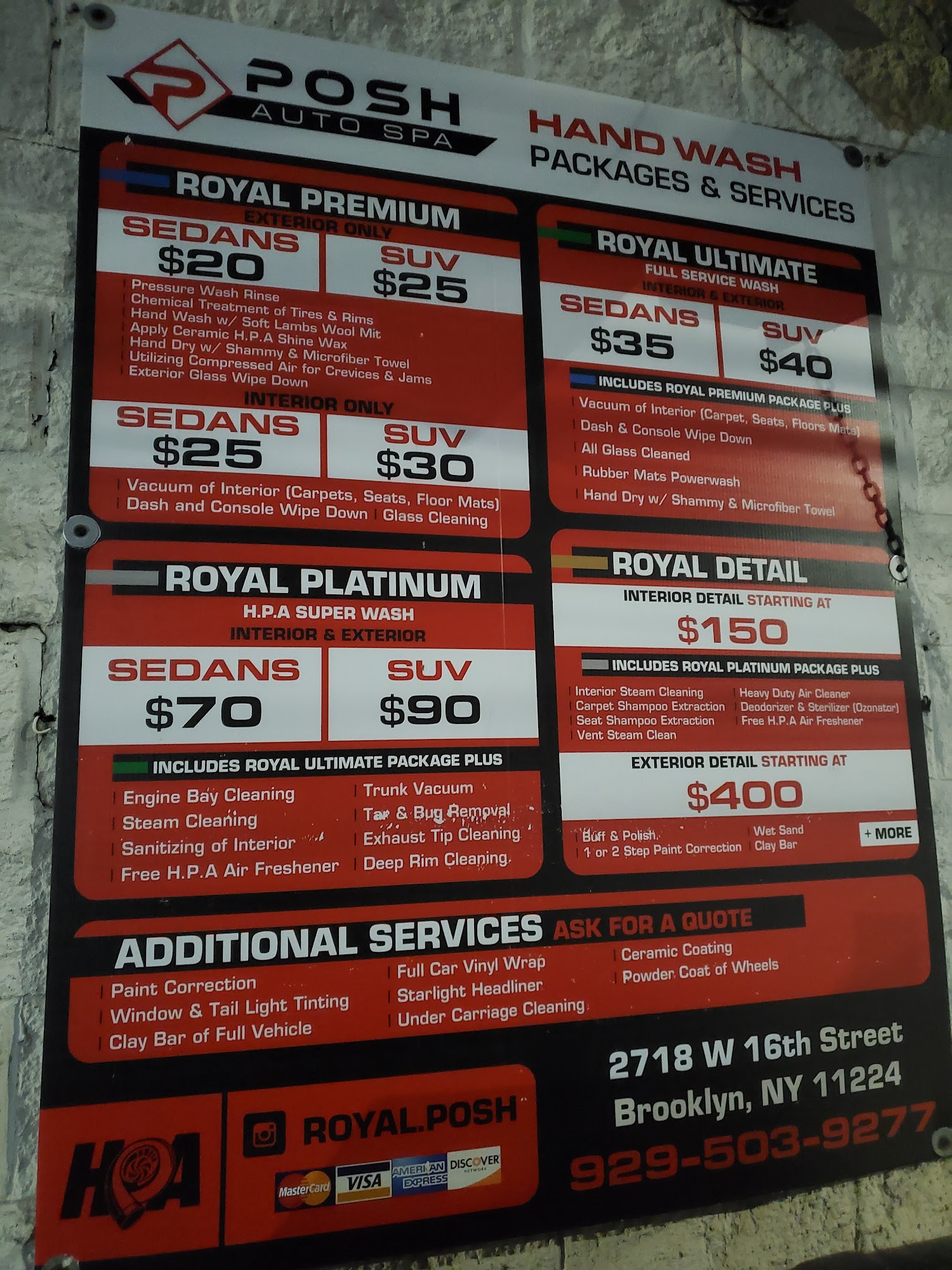 Royal Posh - Auto Spa is a highly recommended car wash and detailing service that provides exceptional results and customer satisfaction. According to reviews, the staff is friendly, professional, and pays close attention to detail, ensuring a spotless interior and exterior. Customers have praised the quick yet thorough service, with one reviewer stating that their car looks "brand new again." The business is known for its attention to detail, with reviewers noting that the team vacuums the crevices and even cleans hidden areas like the spare tire. Customers have found the pricing to be reasonable, and many have become repeat visitors based on the quality of the work and positive experiences. Overall, Royal Posh - Auto Spa is a reliable and trusted choice for those seeking quality car care.