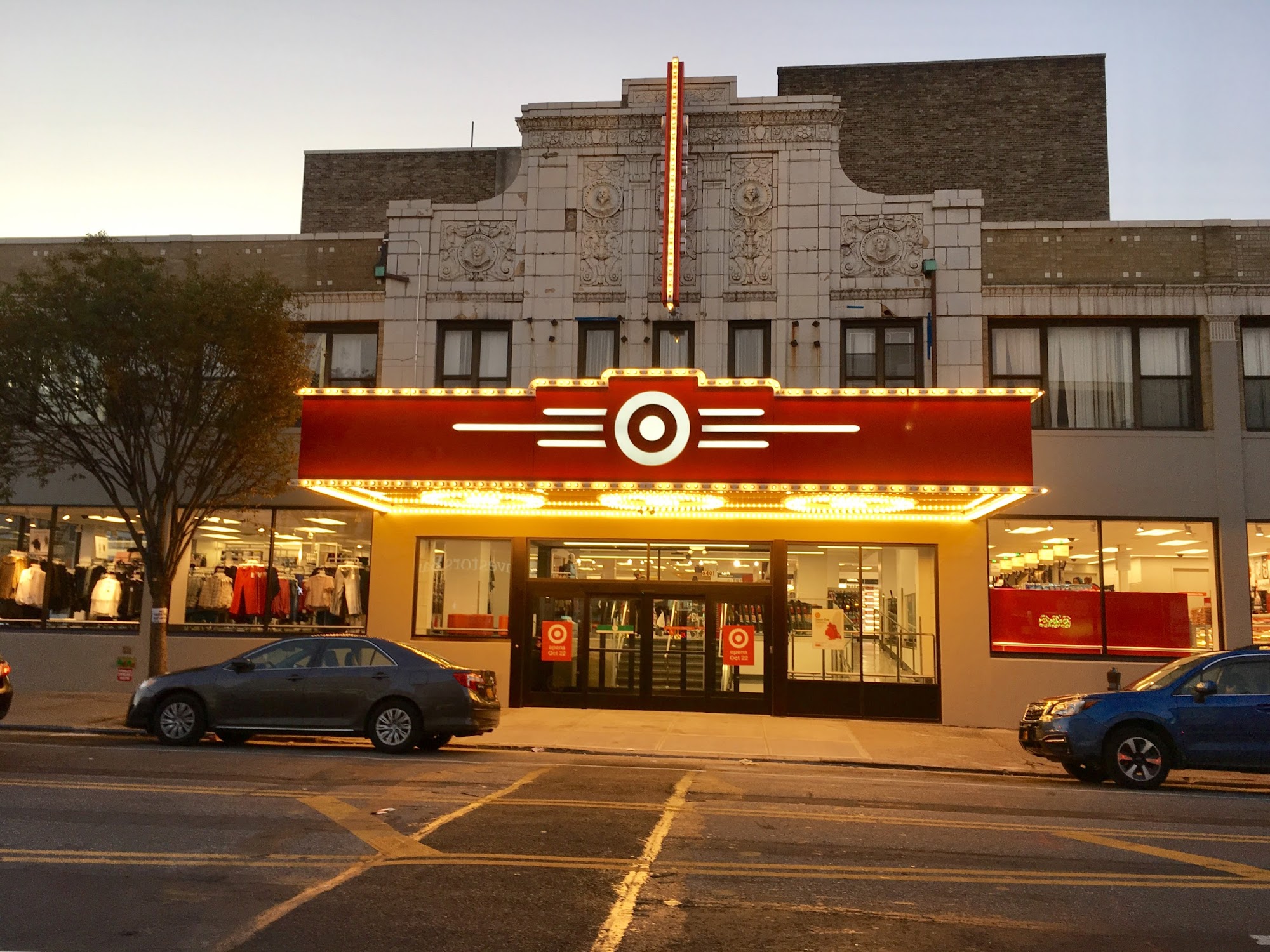 Well stocked target in an old theater building. Buy your sundries in a retro building at no extra charge.