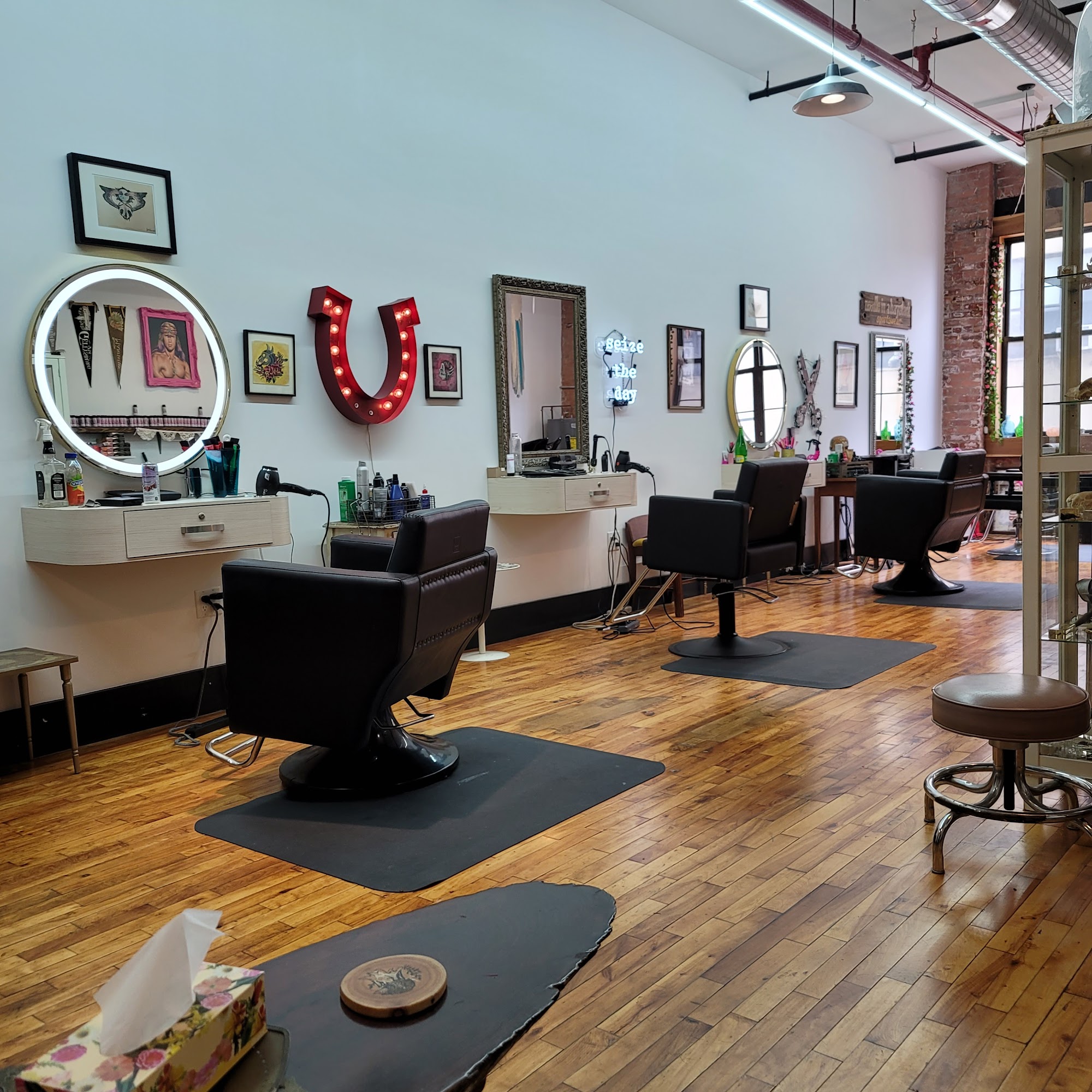 Tomahawk is a gender inclusive private hair studio in the heart of Bushwick, Brooklyn. Est. 2010 and specializing in hair color from double process platinum blonde to multidimensional balayage and highlights. We love turning mere mortals into unicorns and mermaids with our vivid and pastel custom creative color. Our cuts can be bold statement making shags, mullets, fades to beachy waves, we got your backs. We are a gender neutral salon, prices are based on length & style NOT GENDER. BIPOC queer owned safe space. The tomahawk a symbol of both kinship and defiance resonating thru the shop and staff. Appointments and consults can be booked via phone or text at 646-399-6873.