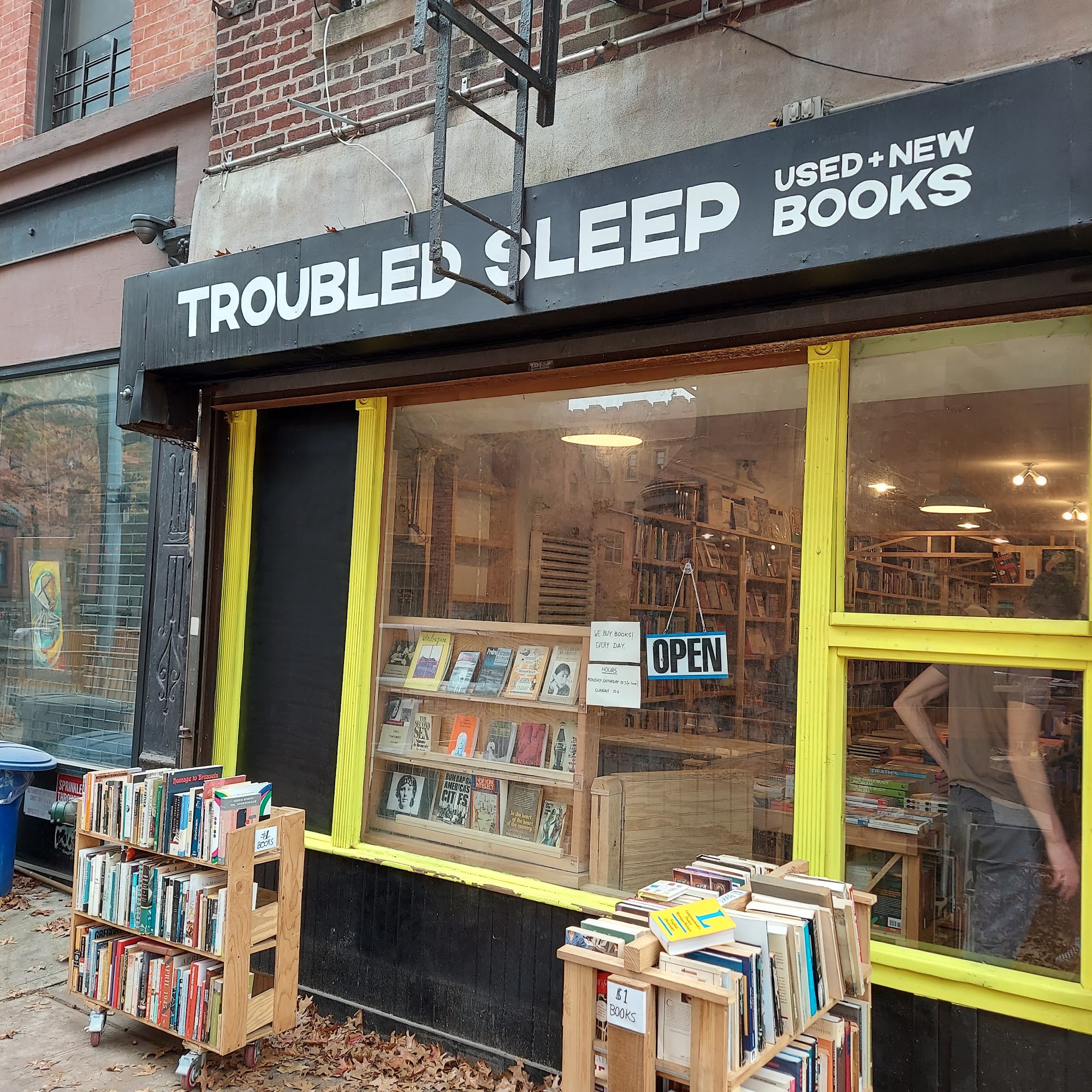 Troubled Sleep is a great local used bookstore in Brooklyn with a super friendly and helpful staff passionate about literature. It offers a great selection at great prices, including a wide variety of second hand genres, classics, and eclectic surprises. The store has a very unique selection of specialty, rare, and esoteric books. It also features well curated sections and occasional carts of bargain books. This incredible, well curated bookstore is a favorite in the neighborhood.