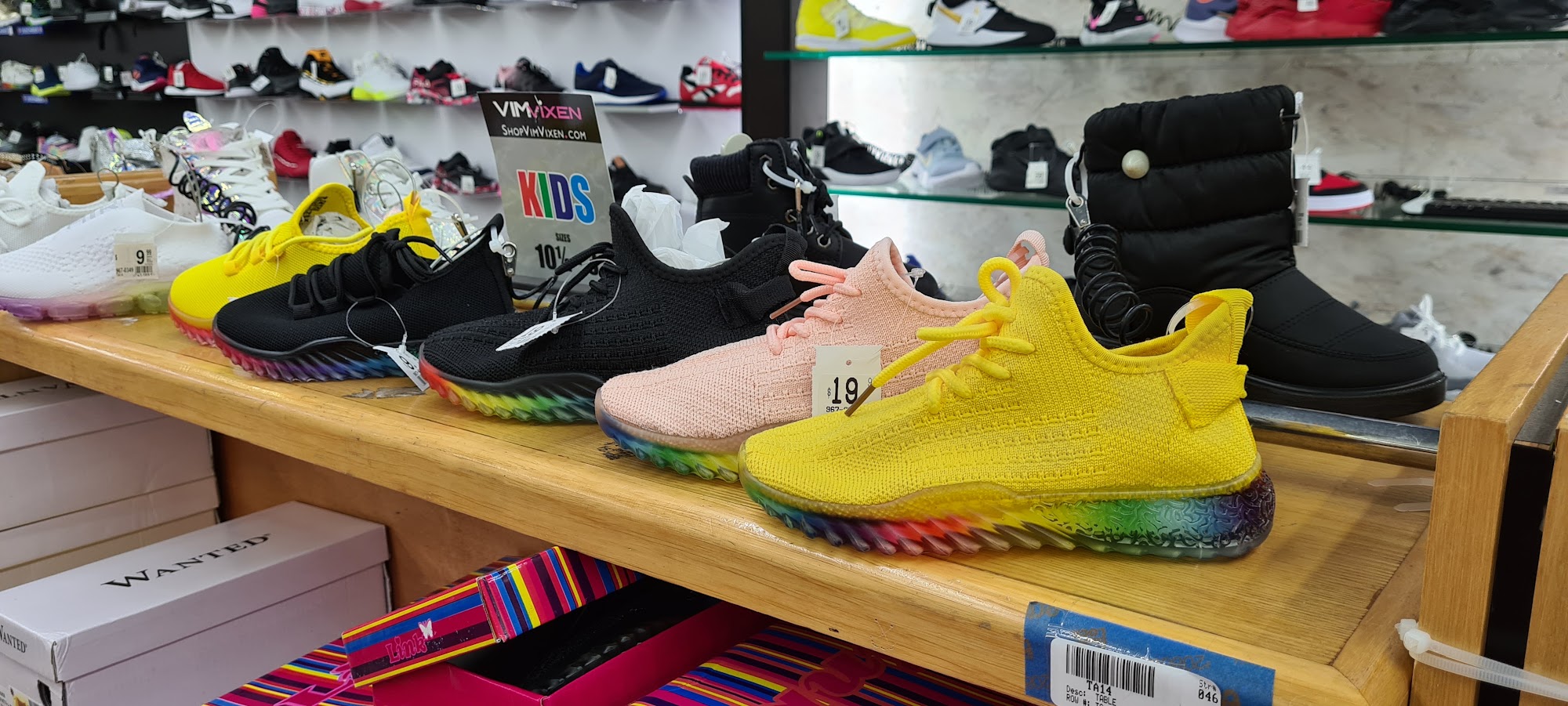 VIM is a store to shop for good quality items at discounted prices. It is a wonderful place to get clothing essentials like socks, underwear, sweatpants, hoodies, and sneakers without spending a lot of money. There is a nice selection of cheap shoes downstairs. The prices on clothes are not bad and everything is cheap, allowing customers to get more items for their money. However, the store has no fitting room to try on items. Sometimes the prices at checkout do not necessarily match the displayed prices, but this is not a huge deal. The selection can also be limited, such as not carrying certain sizes in men's jeans. Despite prices starting to get a little high, many customers are happy to support this local shop.