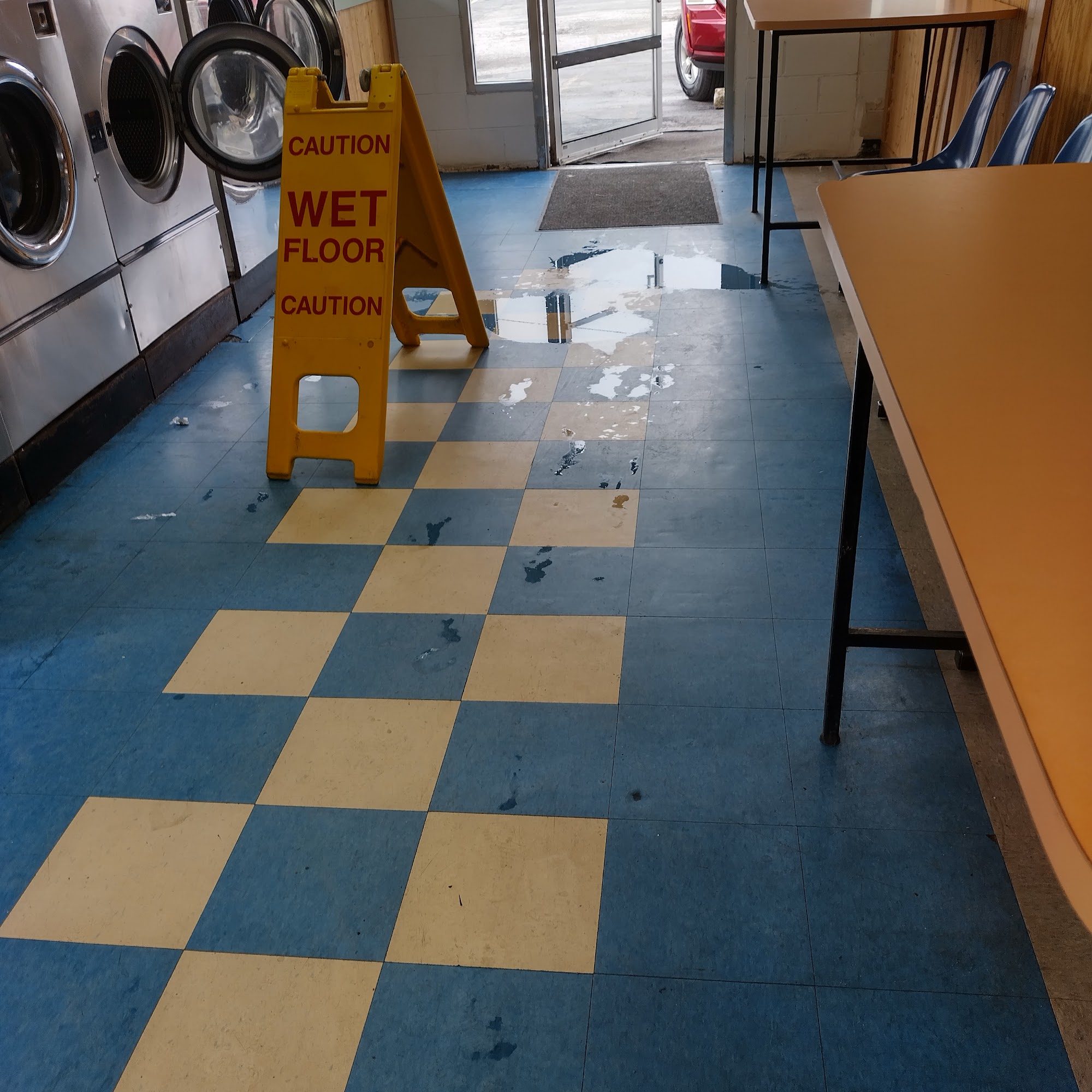 very efficient and price is reasonable as compared to other laundromats close by. older but clean and well maintained. coins only so you need quarters, but they do have cash only coin changers. there is a bathroom as well as a snack and soda pop machines