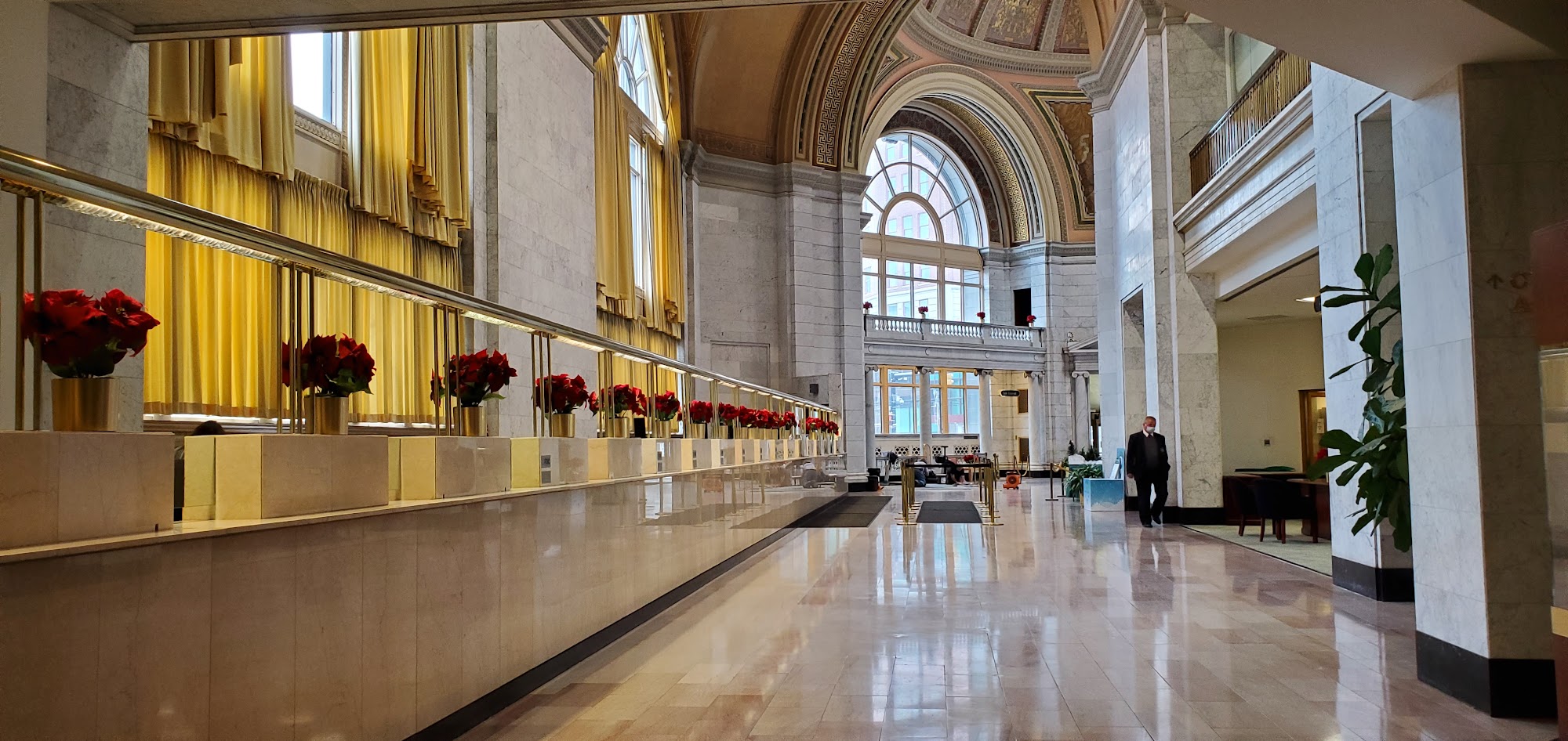 Certainly the most beautiful interesting bank I have ever met. Its architecture stands out in the street with its imposing style, with giant windows and golden roof. The interior does not disappoint, with the ceiling decorated with motifs referring to industry, commerce, the arts and power.