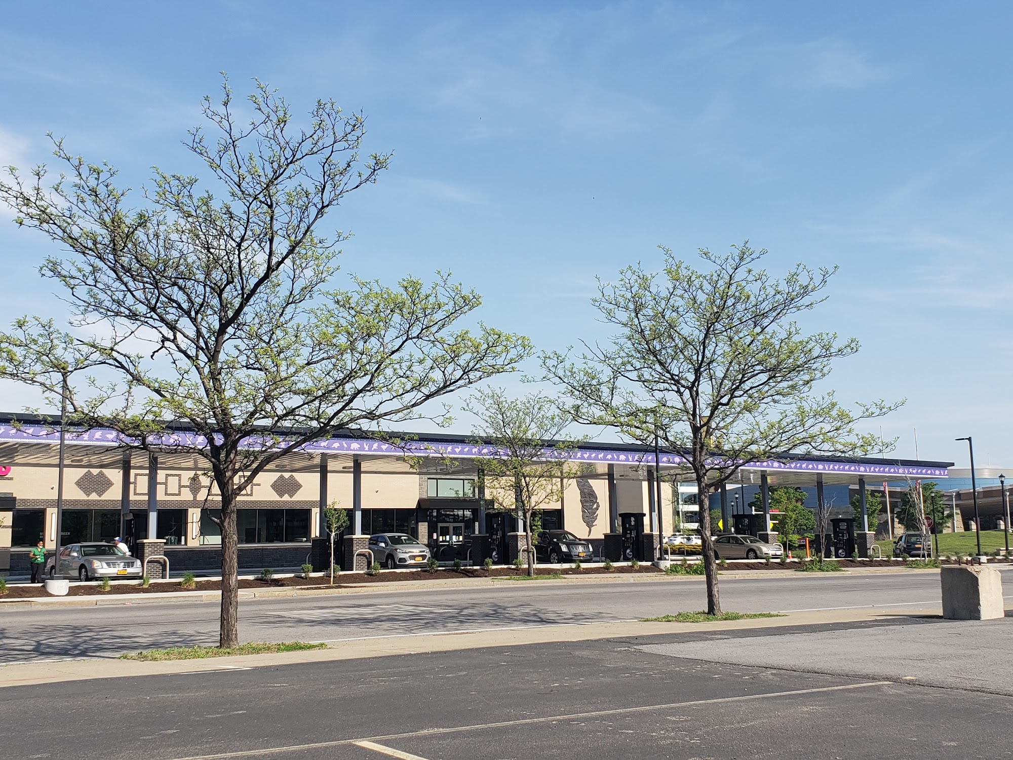 Seneca One Stop is a very busy gas station and convenience store located on the Seneca Nation next to the casino. It is always busy because the gas is much cheaper than in surrounding areas and the cigarettes are priced very low. The store has a fair number of pumps, a relatively new cigar humidor, and the usual gas station convenience store items, making it a good place to get everything you need instead of making different stops. The parking lot is consistently described as a circus, very tight, and chaotic. It can be difficult to maneuver, get in and out, and find a pump or parking spot, especially later in the day when it becomes extremely busy. People are impatient, honk, and sometimes leave their cars at the pumps. Arriving early in the morning provides a better chance to avoid the madness. Despite the chaotic parking situation, the inside of the store is decent and runs smoothly. The staff is cool and processes customers efficiently, even when the lines are long. The experience is unfiltered and occasionally includes people asking for change.