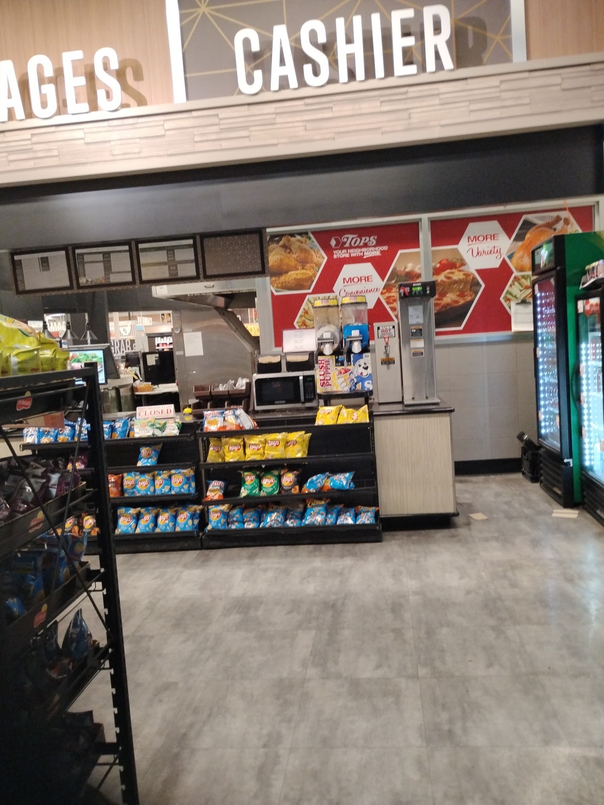 TOPS Markets is a clean and well-stocked store that offers a variety of products, including fresh hot food at the carryout. Customers appreciate its smaller size compared to other locations, making it easier to find what they need, although some find certain items frequently out of stock. The store staff is praised for being helpful and friendly, often going out of their way to assist customers. The deli, especially for roast beef, is highly recommended, with friendly service. However, some concerns include the high prices, which are considered overpriced compared to other stores, and the need for better maintenance of self-checkout stations and bathroom cleanliness. The store also has a limited number of mobility carts, which can require asking staff for assistance. Overall, TOPS Markets is valued for its helpful staff and convenient size, but improvements in cleanliness and pricing would enhance the shopping experience.