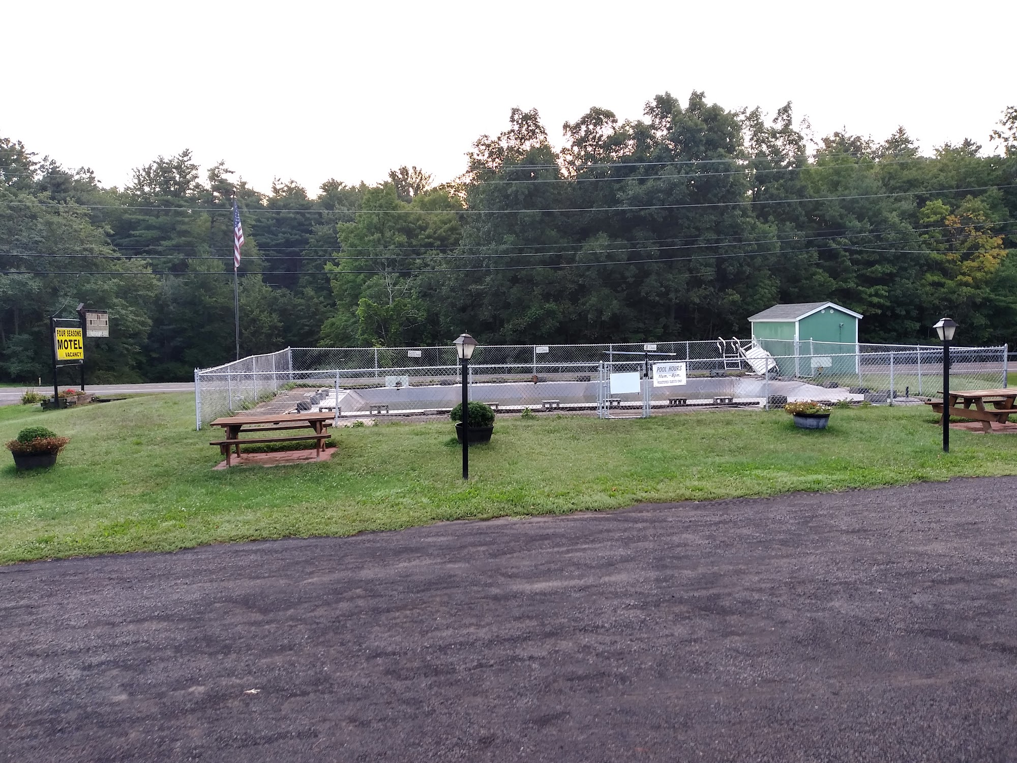 The Four Seasons is a motel in the Catskill mountains offering great value for money, described as cheaper than other nearby options. It is conveniently located, about a 15-minute drive from Catskill and close to many attractions in a great mountainous area with good views. Some guests note it is near a road, resulting in a bit of car noise. Rooms are cozy, inexpensive, and have everything needed for a stay, including a microwave, refrigerator, and coffee maker. They are very clean. The beds are firm, which some find surprisingly comfortable for sleeping well, though others note the hardness is not for everyone. The heating works effectively, keeping guests warm. The air conditioning is reported as old and noisy, but is not always needed. Water pressure and temperature are good. The staff are consistently described as nice, amazing, friendly, and helpful, with a strong culture of hospitality. They provide good food recommendations and show considerate care for guests. One highlight was the staff mailing back an expensive pair of glasses a guest forgot. The owners are also noted as kind, checking in on guests' plans. While there is no breakfast served, there is a picnic table near the pool. The pool itself is a appreciated amenity, with staff sometimes opening it early for guest enjoyment. Overall, guests are very satisfied, frequently stating they would definitely stay again and recommend the motel.