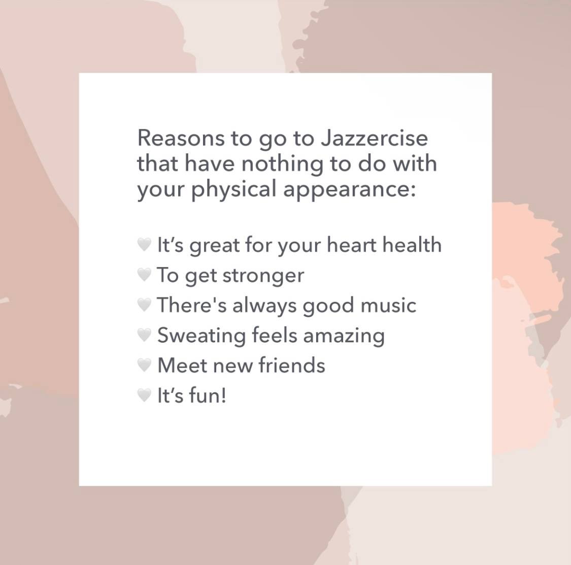 I tried jazzercise for the first time here and it was amazing! They were so encouraging and helpful walking in. The instructor talked to us before and after and made the class so much fun! This class is great for beginners or someone who has danced all their life! A great studio that I look forward to going back to.