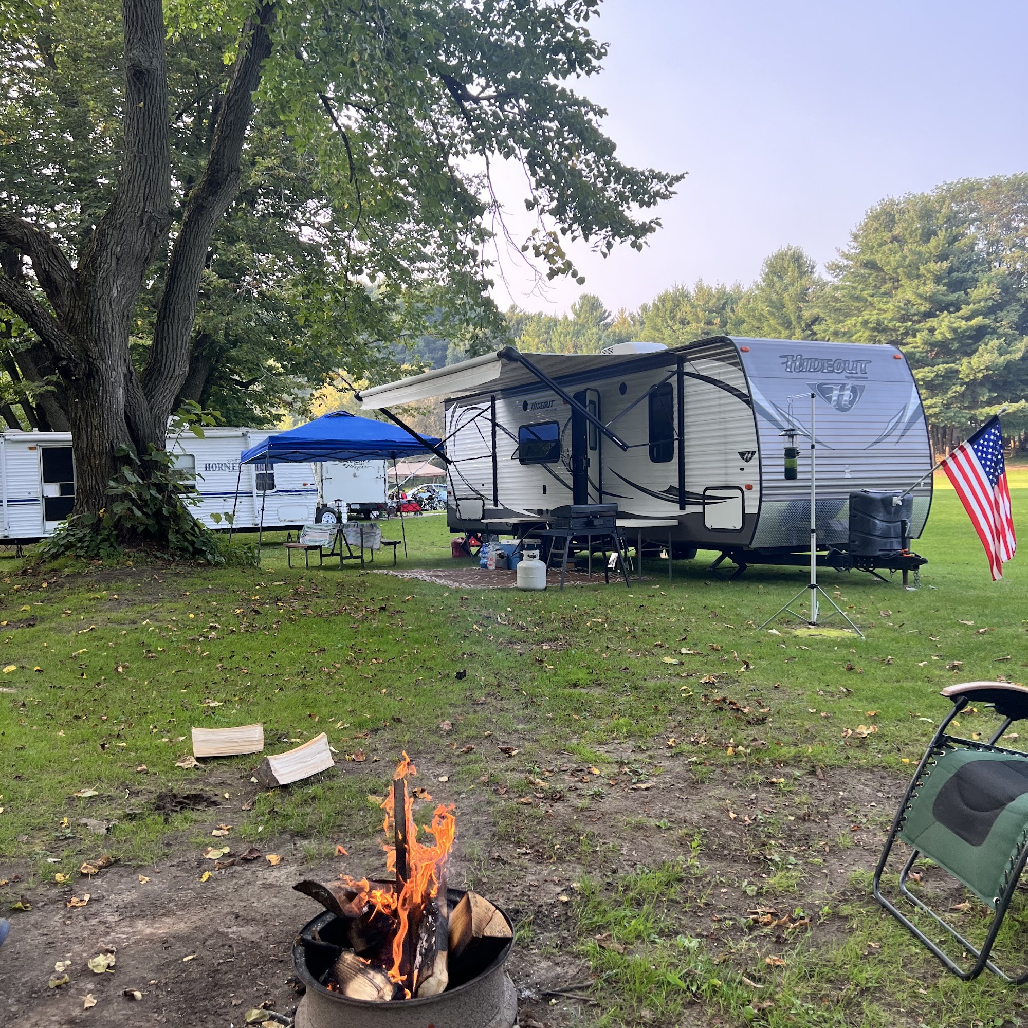 Pine Ridge Park Campsite offers a friendly and welcoming environment for all campers. Located in a beautiful setting deep in the pines, the campground provides a real camping feel with full hookups and scenic views of the river near the tent sites. Visitors often enjoy activities such as kayaking, canoeing, fishing, swimming in the pool, and using the large playground and kids' activities. The campground features amenities like bathrooms, showers, a rec hall with darts and a pool table, horseshoes, a general store, propane fill-up, and two dumping stations. During the summer, free lunches for kids and special events like Halloween celebrations add to the community atmosphere. Guests praise the well-maintained grounds and the caring staff, especially Crystal, who is known for her friendliness and helpfulness. Many visitors mention that the staff makes them feel like family, even during rainy days or challenging times. The campground's peaceful setting and friendly community make it a perfect place for families to relax and reset their minds. Although some wish such a beautiful spot was closer to home, the three-hour drive is often considered worth it. Overall, Pine Ridge Park Campsite is highly recommended for those seeking a beautiful, friendly, and activity-filled camping experience.