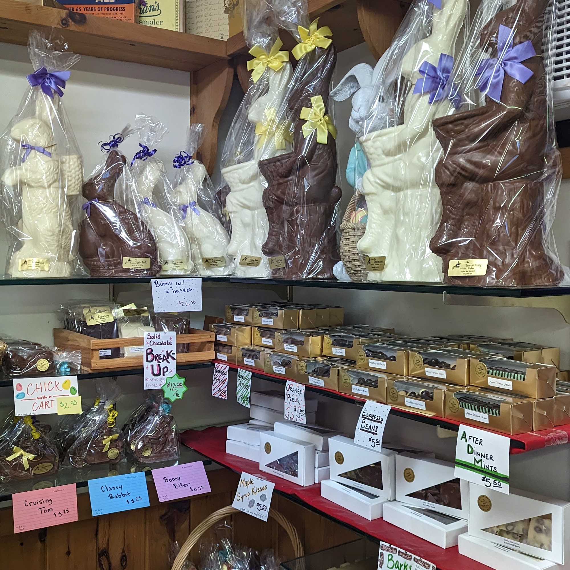 Croghan Candy Kitchen is a small shop offering amazing homemade, hand-crafted chocolate. There is a large variety and impressive selection of chocolates crammed into the spot, including chocolate covered graham crackers, chocolate coconut haystacks, beaver tails, cremes, and what some call the best chocolate covered toffee in the world. The staff and cashier are very friendly. Visitors can watch the chocolate being made in the shop. It is a cash-only business. The prices are considered fair and irresistible for the delicious, high-quality treats, making it a favorite go-to candy shop for many.