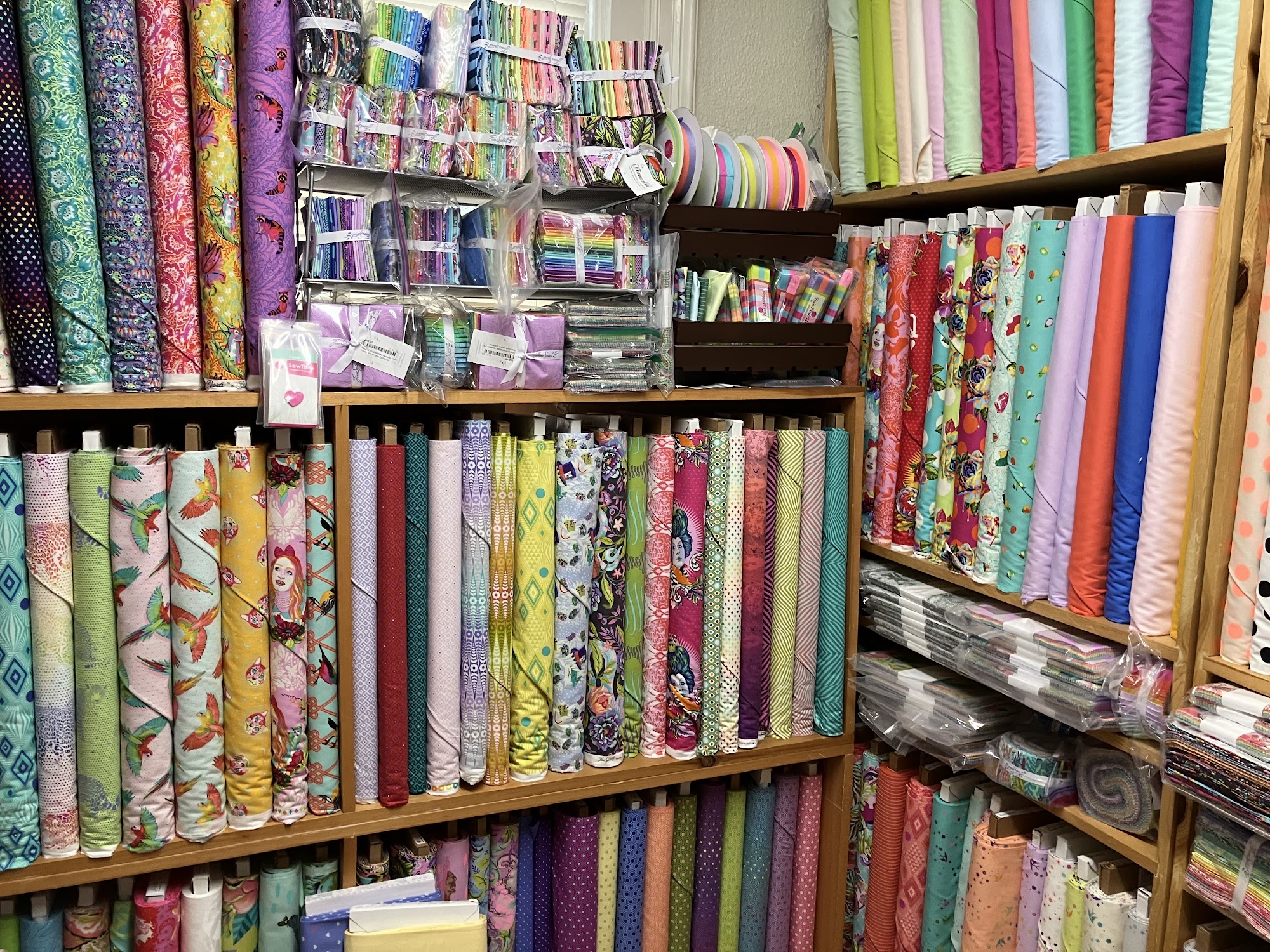 Patchwork Angels Quilt Shop offers a wide selection of fabrics, including popular brands like Tula Pink and Ruby Star Society. The shop is well-stocked with quilt kits, notions, rulers, and other sewing tools, as well as a vast collection of quilt books and patterns. Customers praise the shop's helpful and knowledgeable staff, who go the extra mile to assist with specific requests. The shop also provides machine repair services, with quick turnaround and reasonable prices. Overall, Patchwork Angels Quilt Shop is a quilter's paradise, where customers can find everything they need and receive excellent customer service.