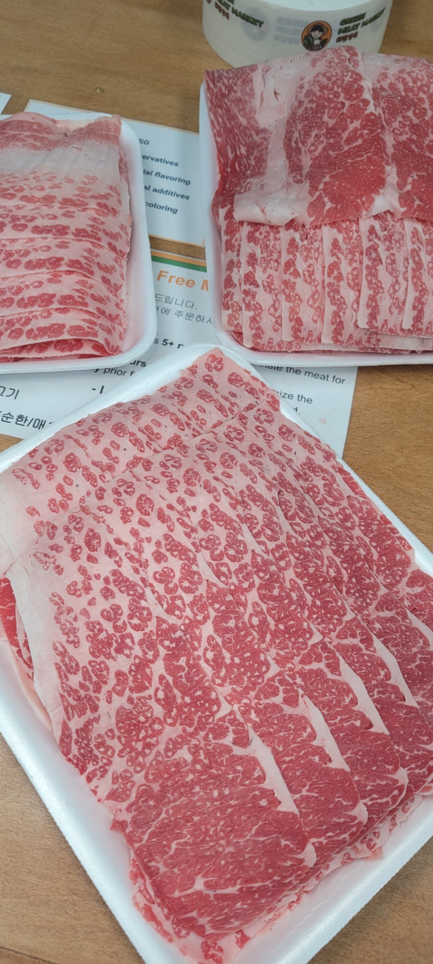 Green Meat Market 대한정육_Flushing is highly praised for its excellent quality of meat and great prices. Regular customers enjoy items like marbled pork belly, thinly sliced brisket, LA short ribs, and marinated pork shoulder, often highlighting the freshness and deliciousness of the meats. The neat packaging makes it easy to portion out servings. New visitors appreciate the helpful customer service and are encouraged to try popular options like short ribs and kimchi. Overall, customers express satisfaction and a strong desire to return for more, making this market a favorite for meat lovers in the area.