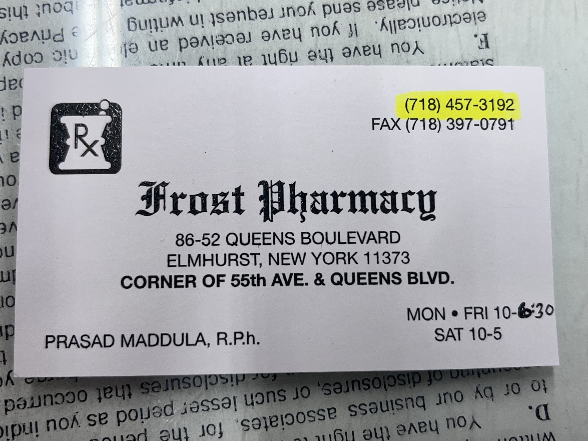 Frost Pharmacy is a highly recommended, friendly, and professional mom-and-pop pharmacy. The staff is exceptionally polite, helpful, knowledgeable, and treats everyone professionally without any attitudes. They remember customers, address them by name, and provide excellent service by having prescriptions ready quickly. They proactively help with insurance issues and thoroughly explain medications. The management and helpers are excellent, making it a standout positive experience compared to chain pharmacies. Customers describe it as the best pharmacy around.