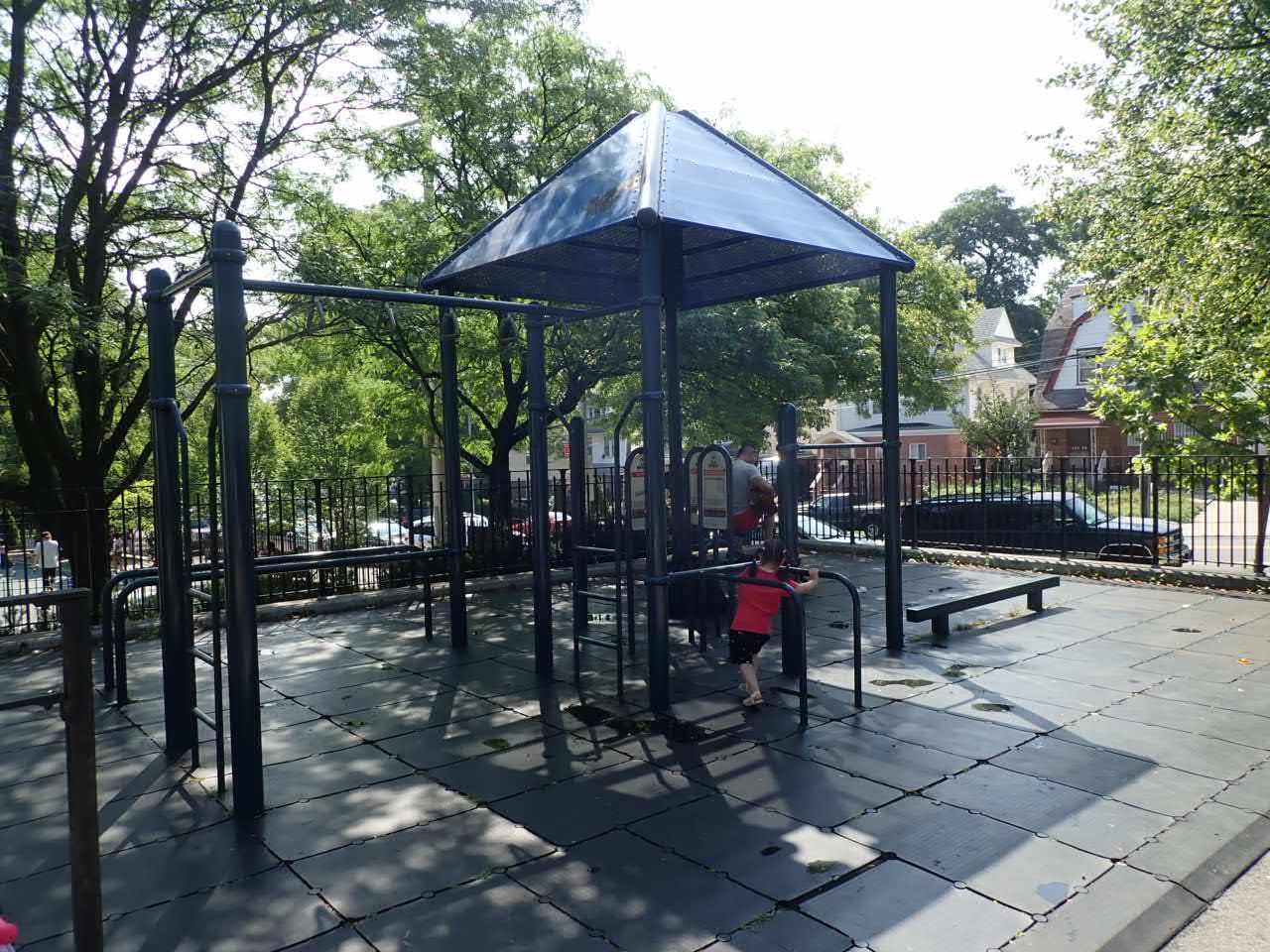 Murray Hill Playground is a nice park in Flushing Queens with a ton of space. It has a basketball court, a handball court, a jungle gym, monkey bars, and slides. There is also a fitness center area and plenty of benches. It is for children and adults of all ages to play, relax, or people watch. The playground recently got a renovation.