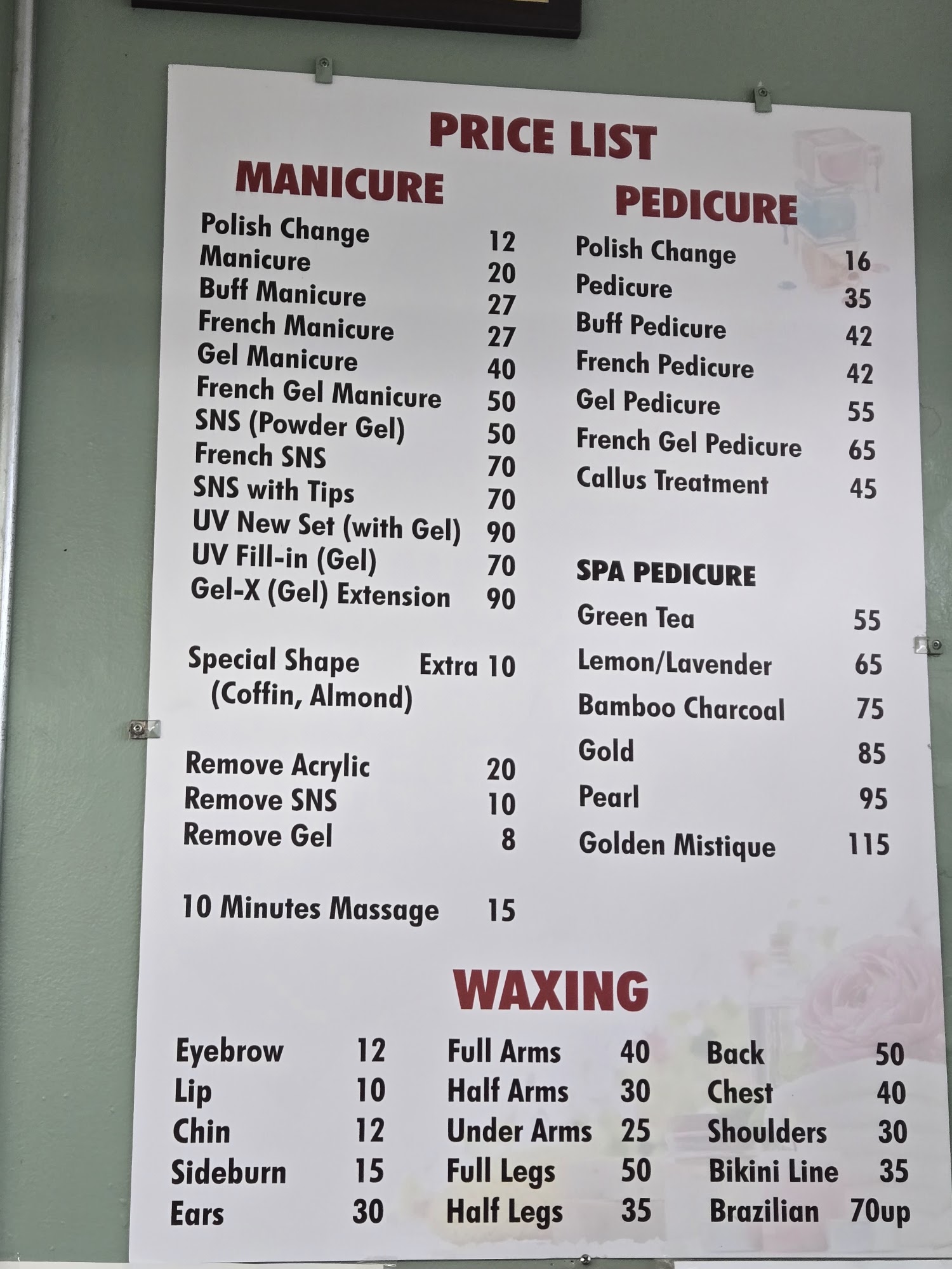 New management we are change new manicure table and pedicure chair .instal ventilation.welcome enjoy !!!!